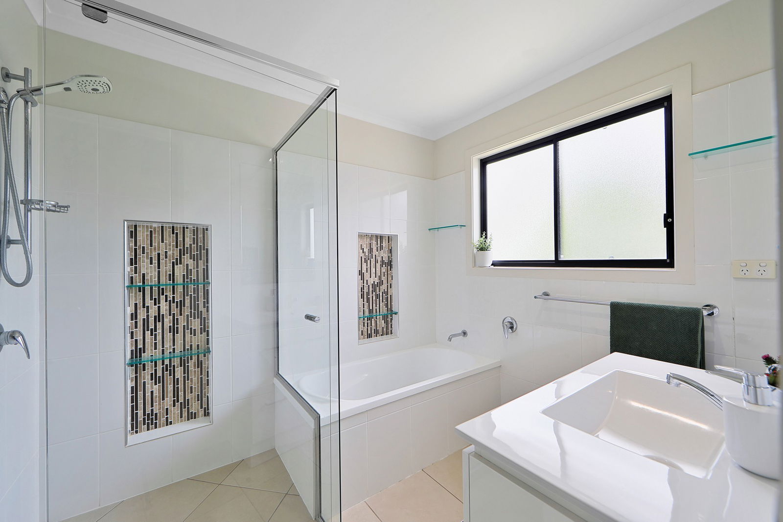 All four bedrooms are fitted with ceiling fans and offer easy access to the main bathroom. The master suite is a true retreat, featuring air-conditioning, a walk-in wardrobe, and a private ensuite.