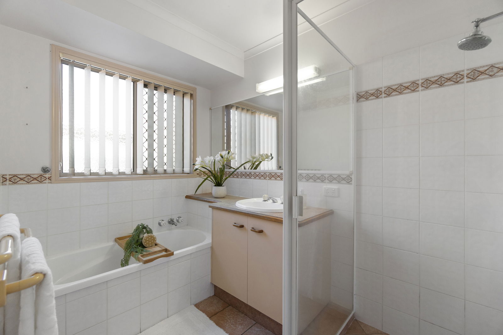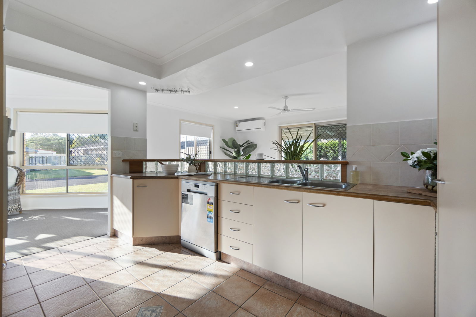 The main bathroom offers a full-size bathtub and a separate shower, perfect for busy households. With two generous living areas, both air-conditioned, there is plenty of space for the whole family to relax without feeling crowded. The well-appointed kitchen features a new stainless-steel dishwasher and ample cupboard and bench space.