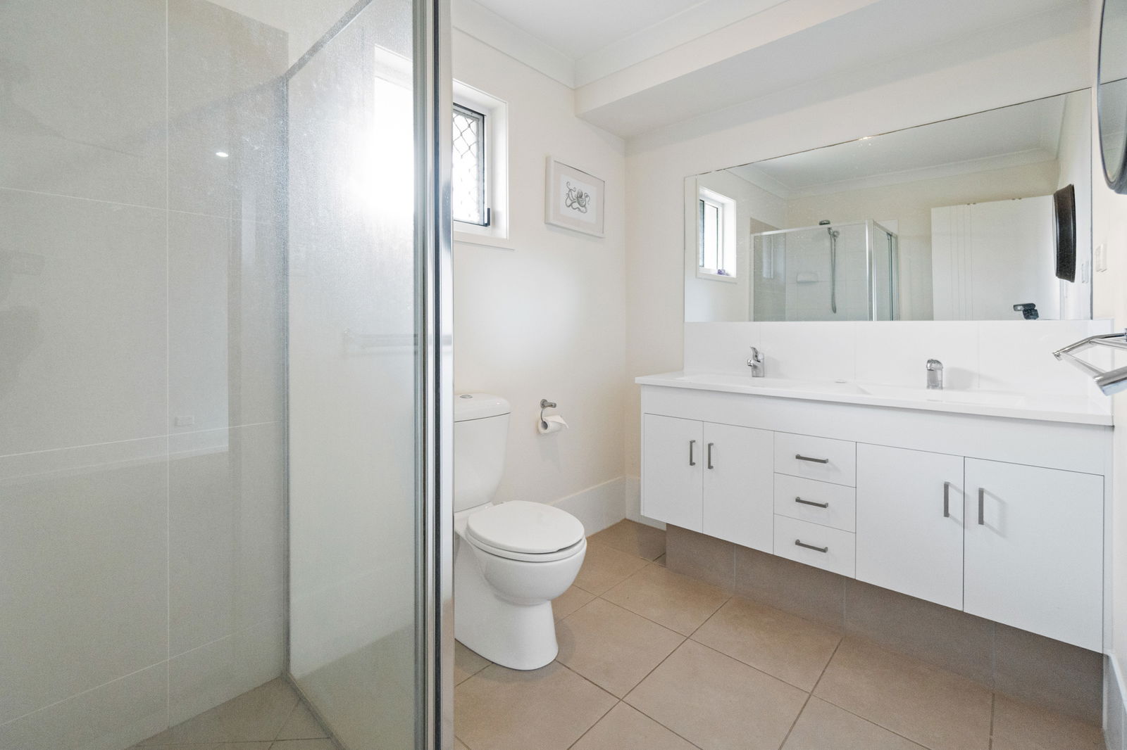 The home includes two spacious living areas, with the main living space air-conditioned for year-round comfort, while the second living area can be closed off with stylish barn-style doors, making it perfect as a media room. The kitchen is modern in design and comes complete with a dishwasher for convenience.
