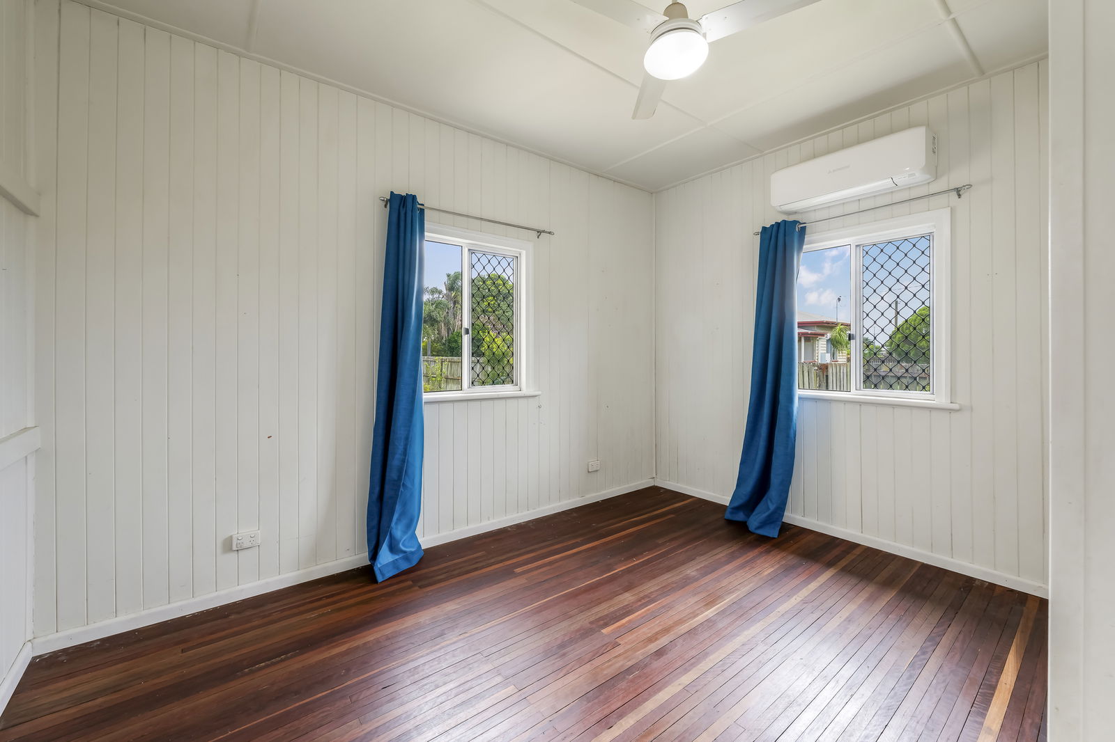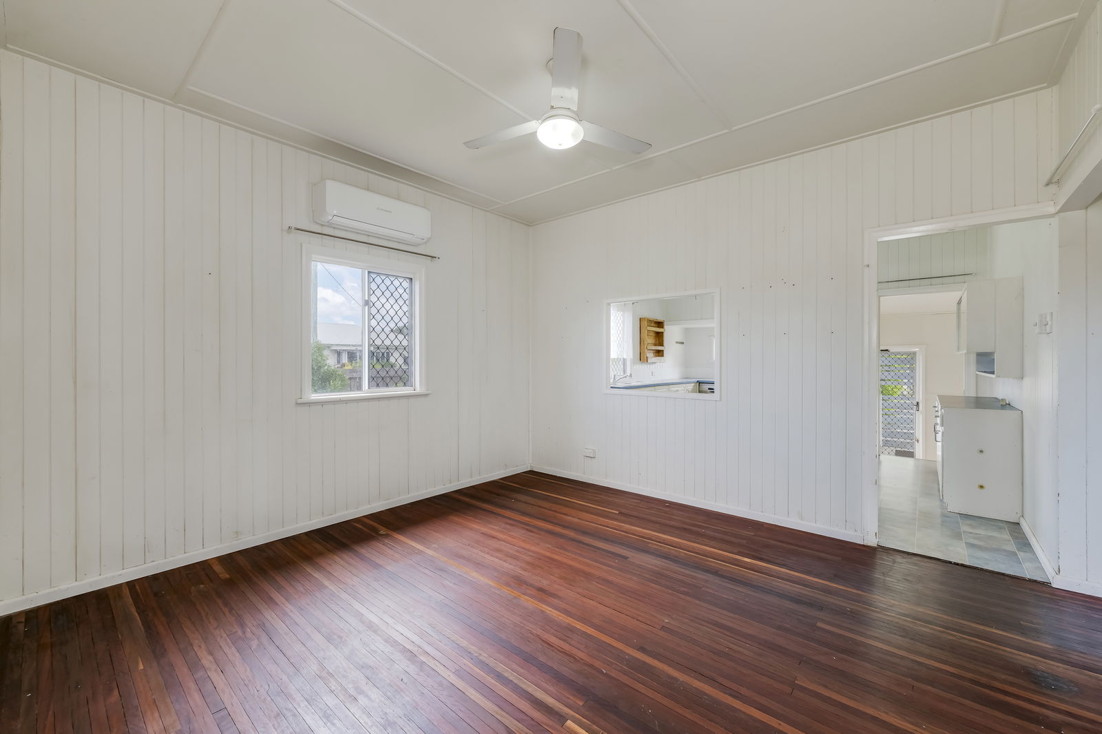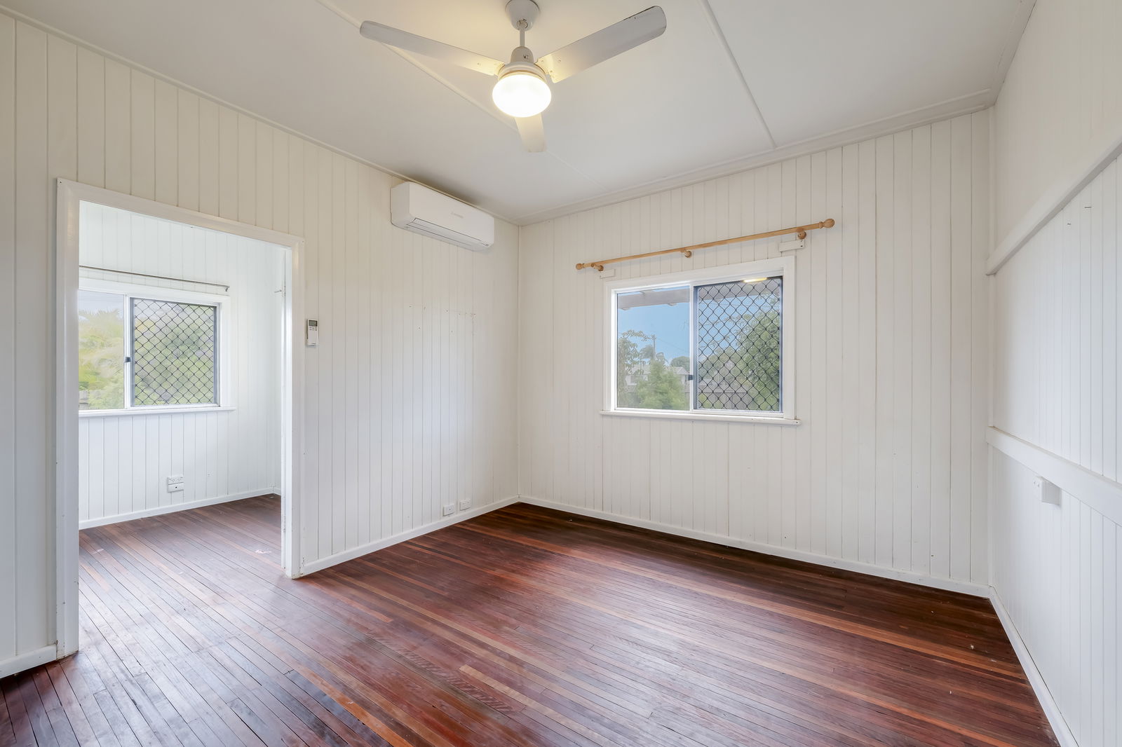 Inside, the home feels bright and inviting, featuring polished timber floors, high ceilings, and a practical layout that provides separation between the living areas and bedrooms. Air conditioning and ceiling fans throughout ensure year-round comfort, while the added convenience of two toilets makes everyday living that little bit easier for families.
