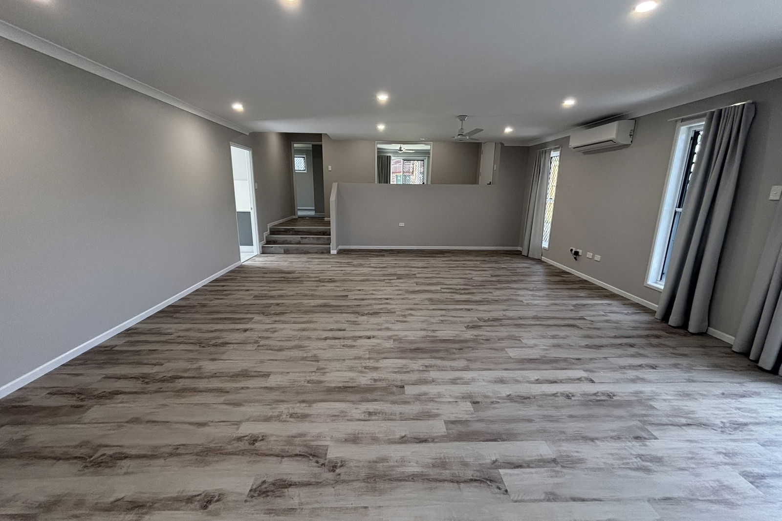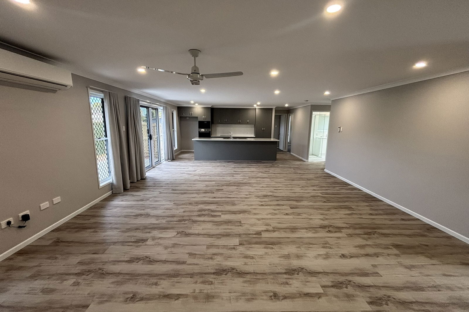 This modern, newly built 4-bedroom home is located in the convenient suburb of West Gladstone. thoughtfully designed, all bedrooms feature air-conditioning, ceiling fans, and walk-in wardrobes, with carpeted flooring for added comfort. The bathrooms are tiled for easy care, while floorboards run throughout the rest of the home.