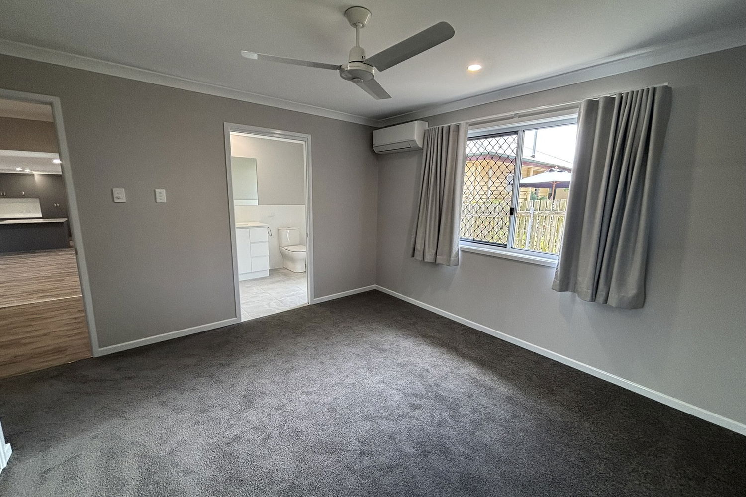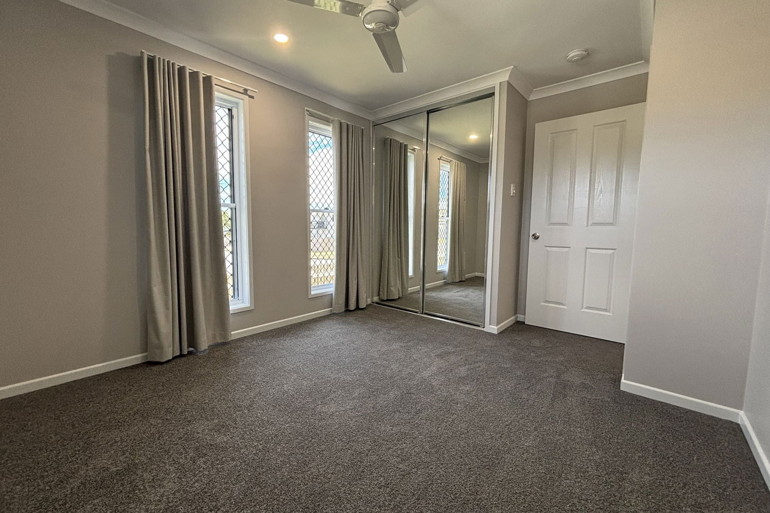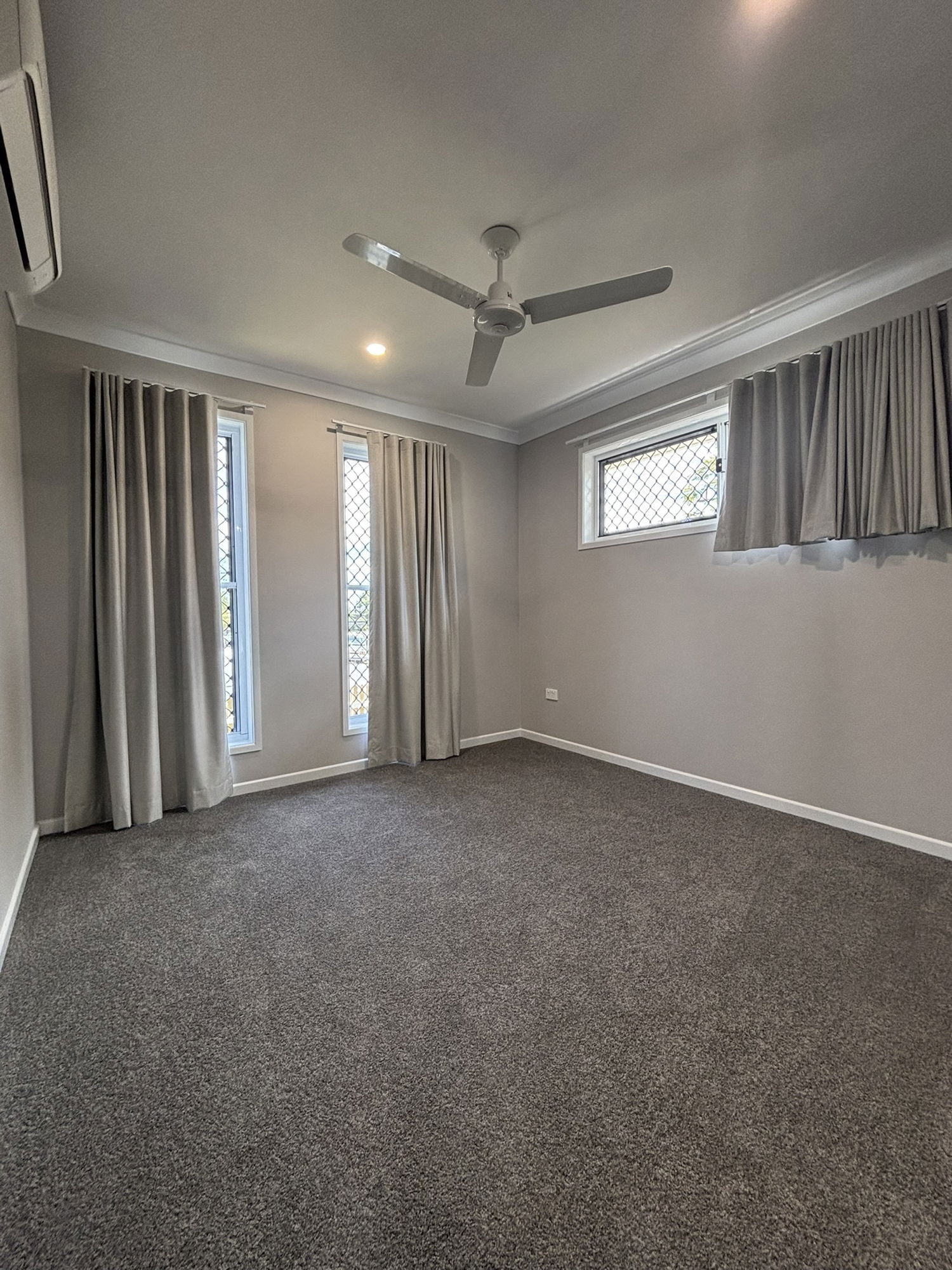 This modern, newly built 4-bedroom home is located in the convenient suburb of West Gladstone. thoughtfully designed, all bedrooms feature air-conditioning, ceiling fans, and walk-in wardrobes, with carpeted flooring for added comfort. The bathrooms are tiled for easy care, while floorboards run throughout the rest of the home.