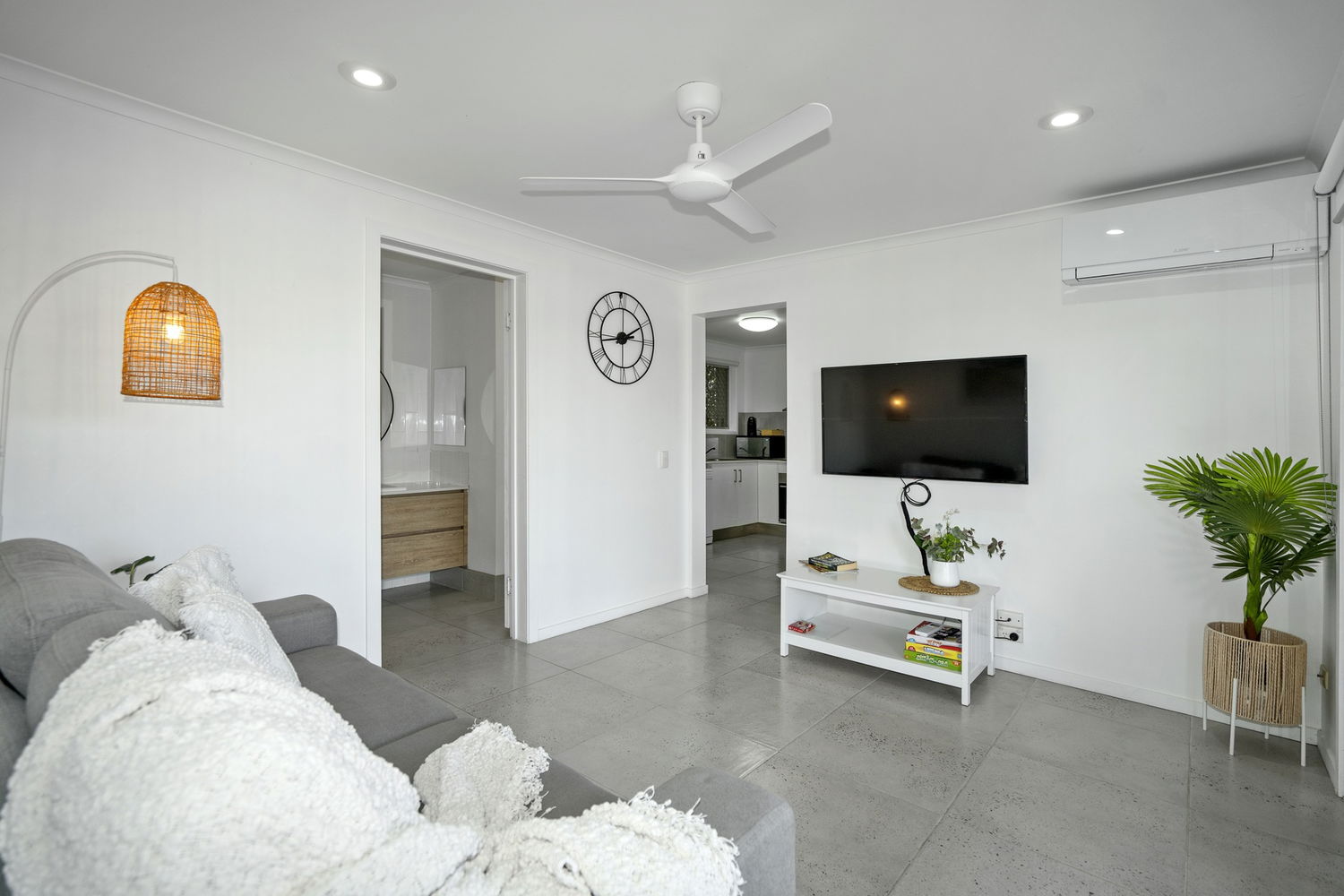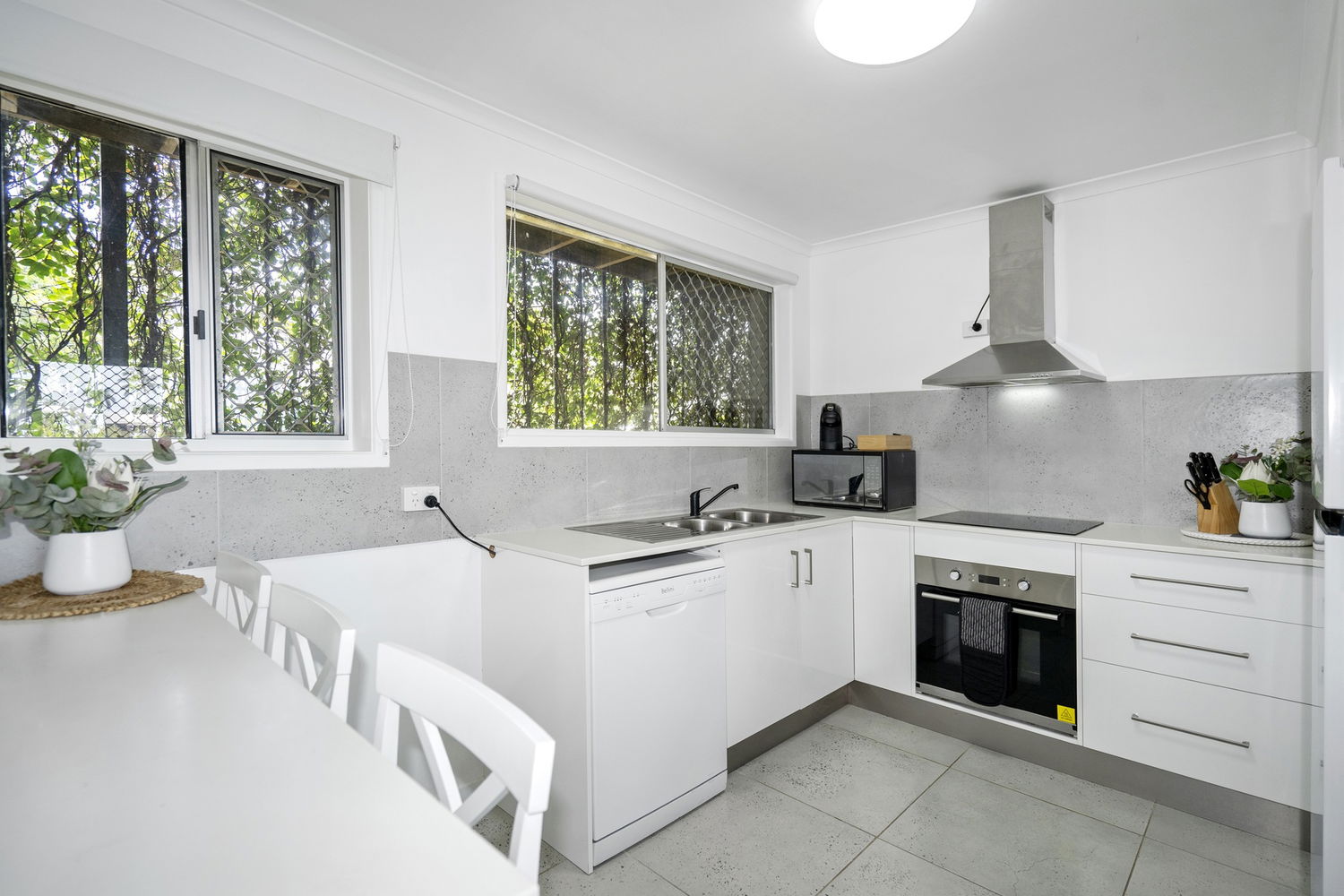 The modern kitchen is a chef's delight, complete with sleek appliances, a dishwasher, and stylish stone benchtops. Security screens throughout provide peace of mind, while the expansive balcony overlooking Money Creek Inlet or Kelly's Beach is the ideal spot to soak in the coastal serenity.