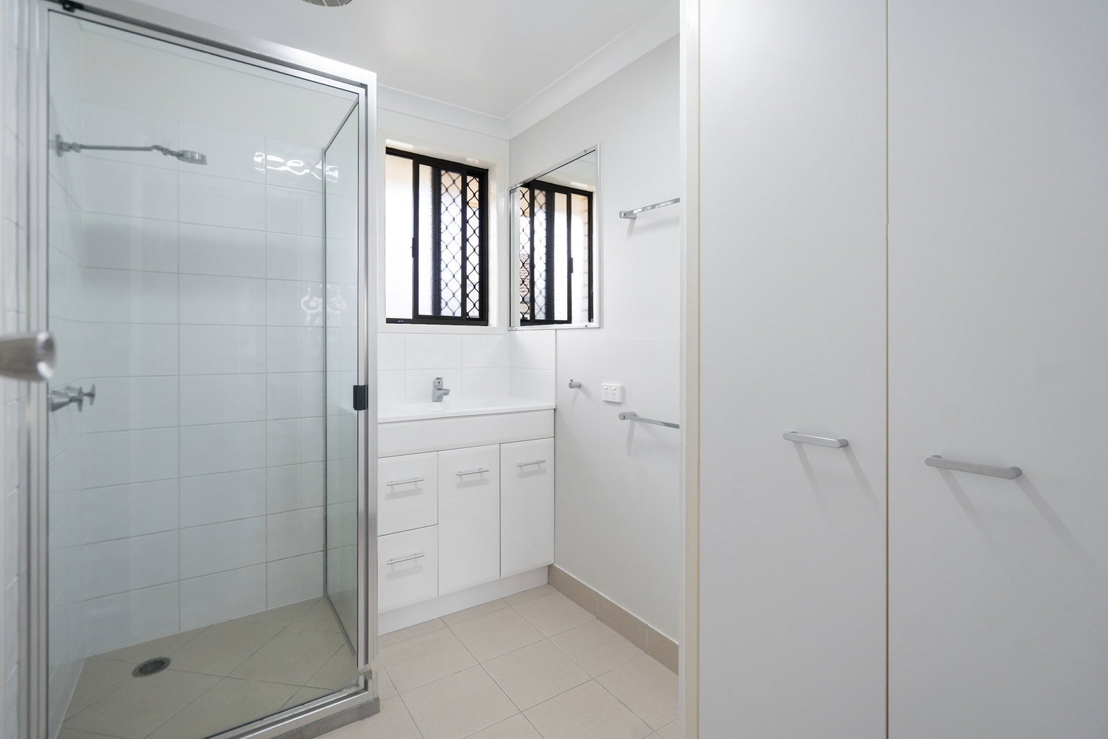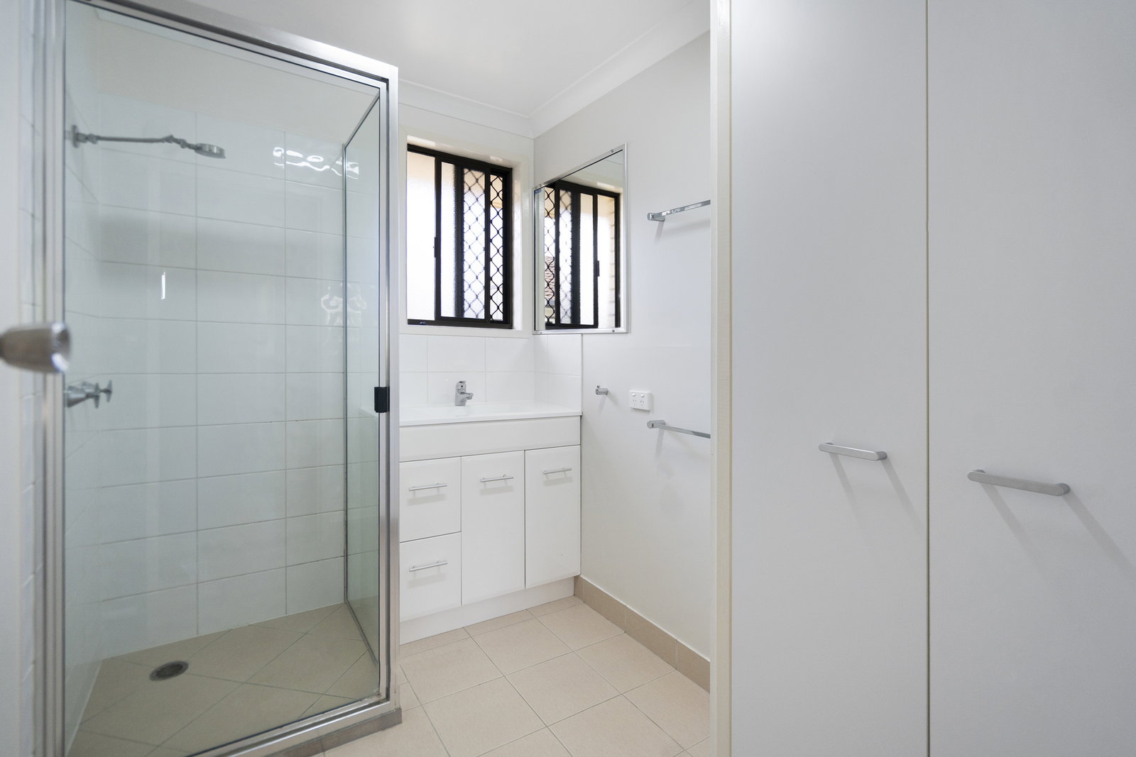 Both bedrooms are generously sized and include built-in wardrobes and ceiling fans, while the modern bathroom is well presented with a large shower and contemporary vanity.
