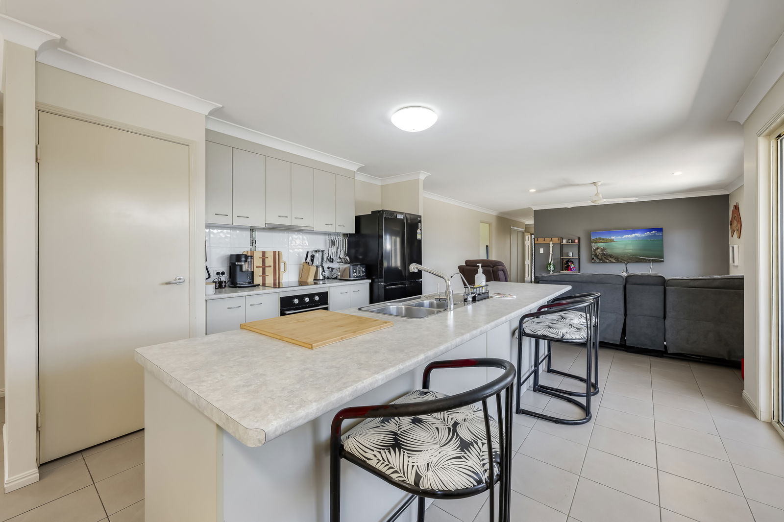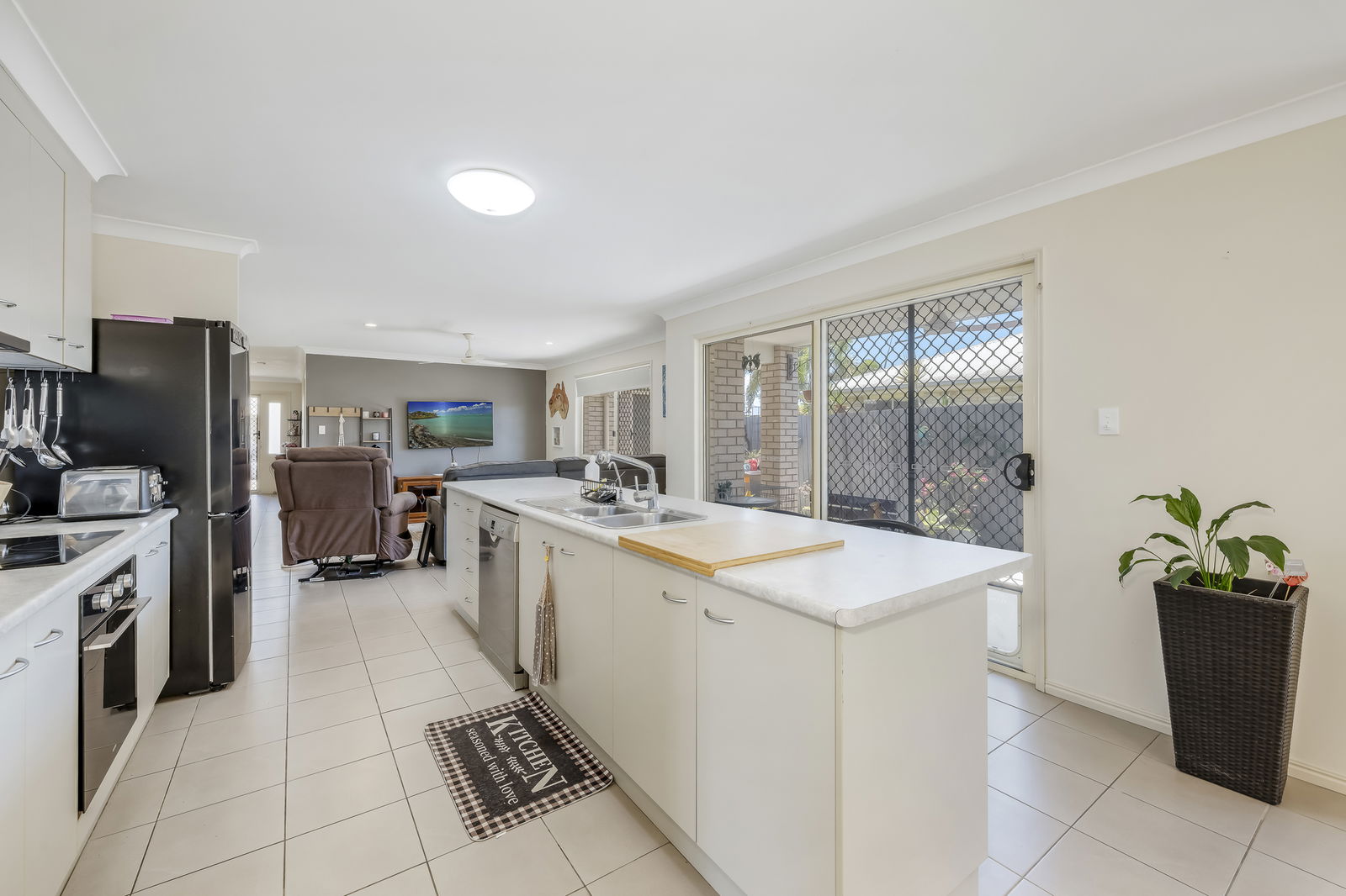 Built in 2008 and thoughtfully designed, the home features an open-plan kitchen, dining and living area with tiled floors throughout, creating a practical layout for everyday living. The central kitchen overlooks the outdoor entertaining area, making it ideal for families and those who enjoy entertaining.