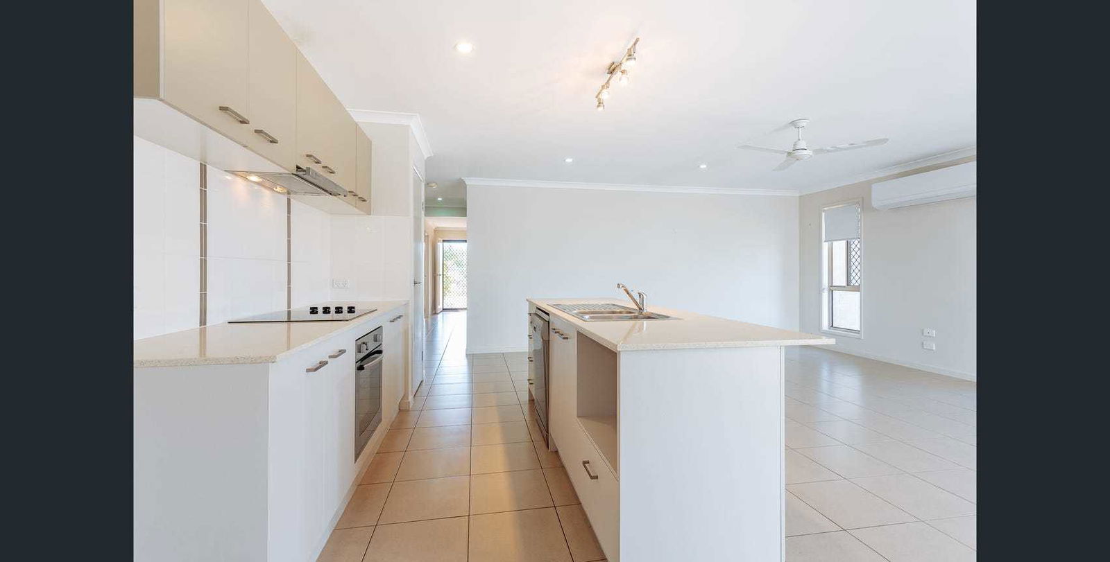 - Open-plan living and dining area with split-system air conditioning