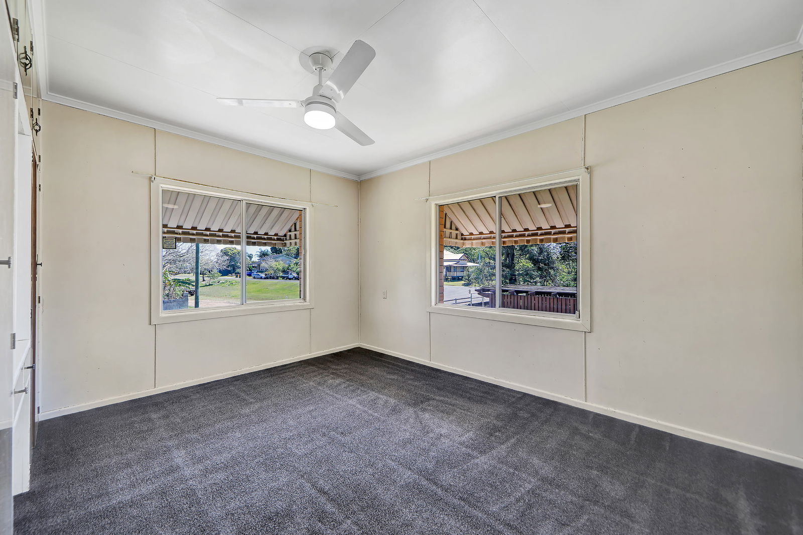 - Spacious open plan kitchen, living and dining area with ceiling fan and double doors opening onto the elevated front veranda.