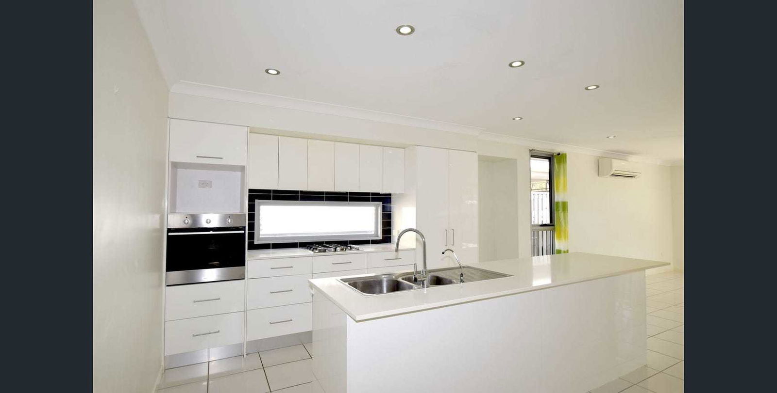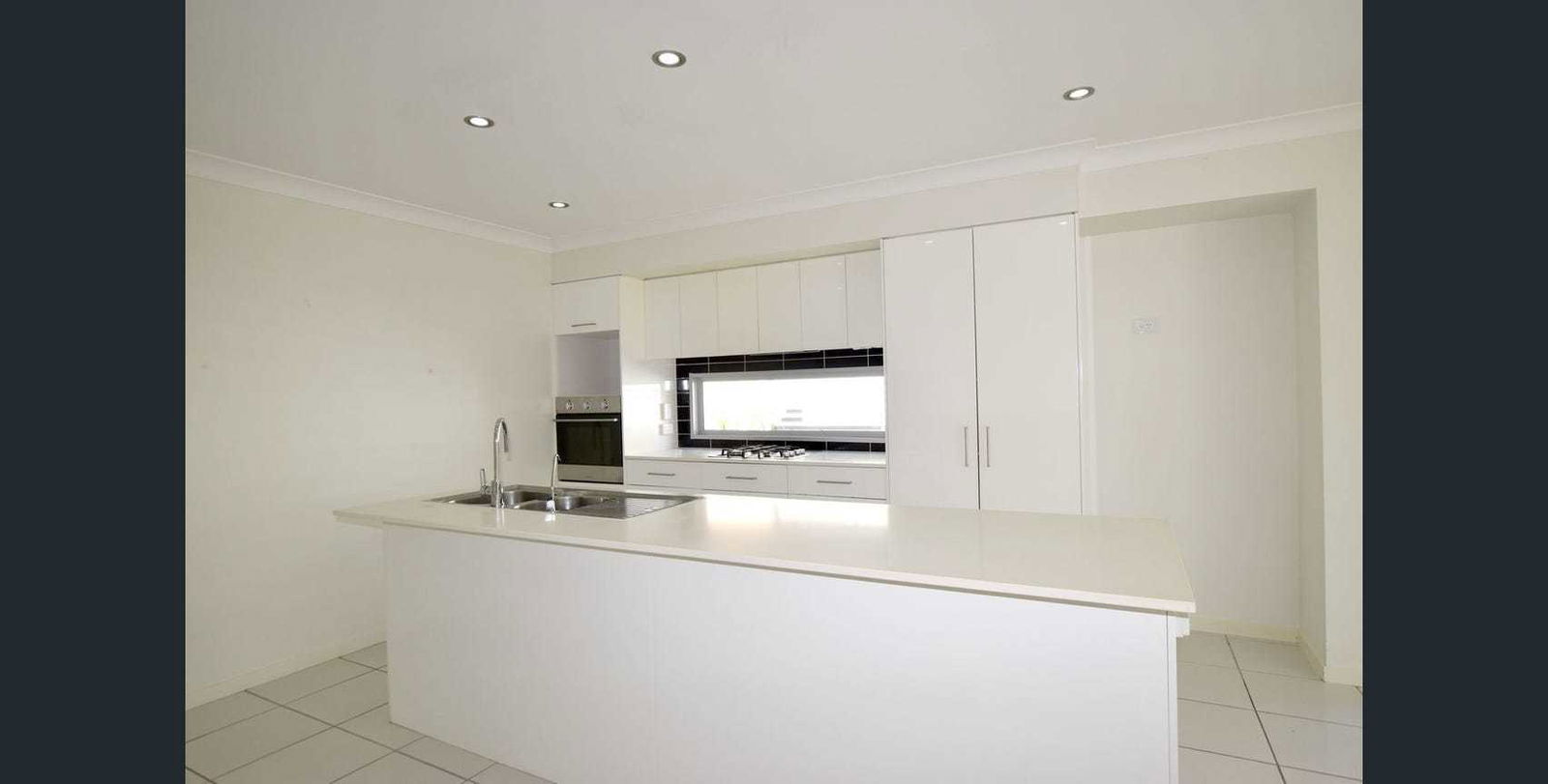 - Modern kitchen with island bench, oven, gas cooktop, and dishwasher