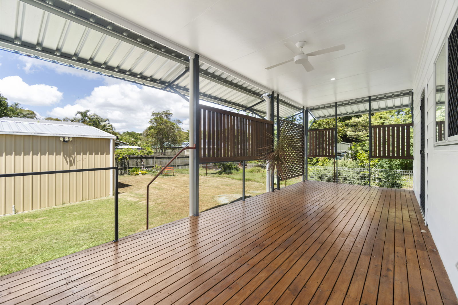 - Three Comfortable Bedrooms: Two bedrooms are inside the main home, both featuring ceiling fans, built-in wardrobes, and private access to the main bathroom. The master suite is a true retreat, accessible exclusively via the verandah, offering a private sanctuary away from the main living areas. It features a spacious ensuite complete with a bath, separate shower, toilet, and generous vanity, creating the perfect space to unwind.