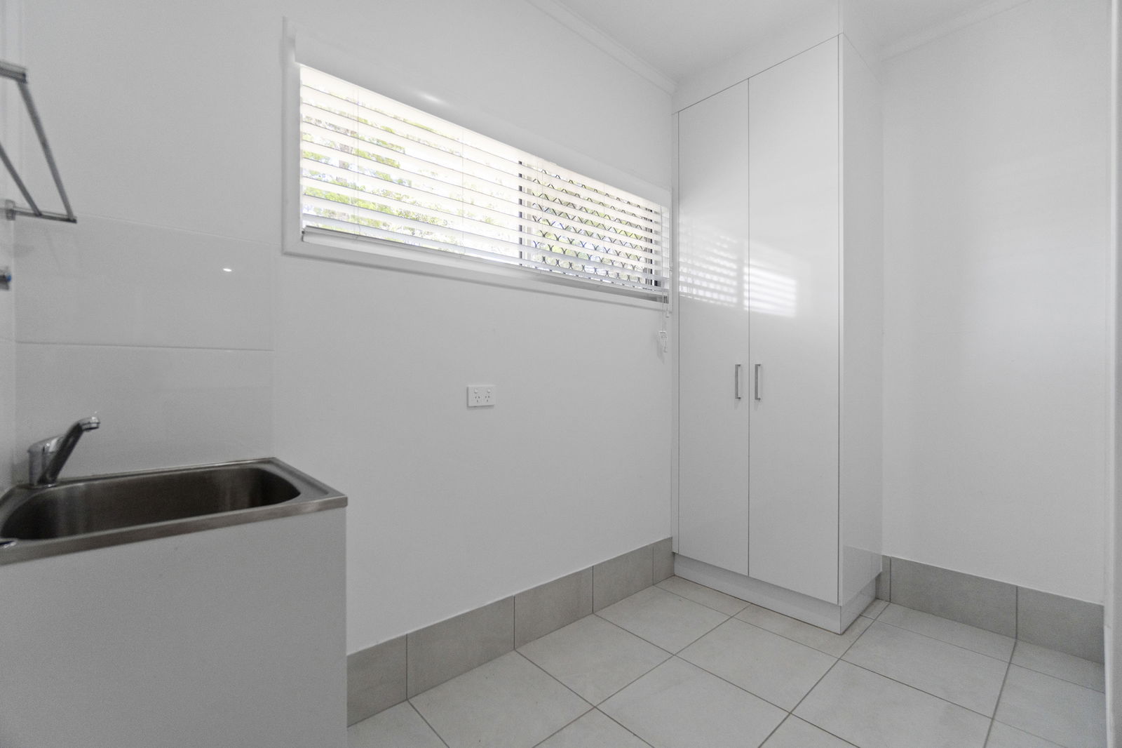 - A dedicated laundry area with built-in storage ensures effortless organization and convenience for daily household tasks.