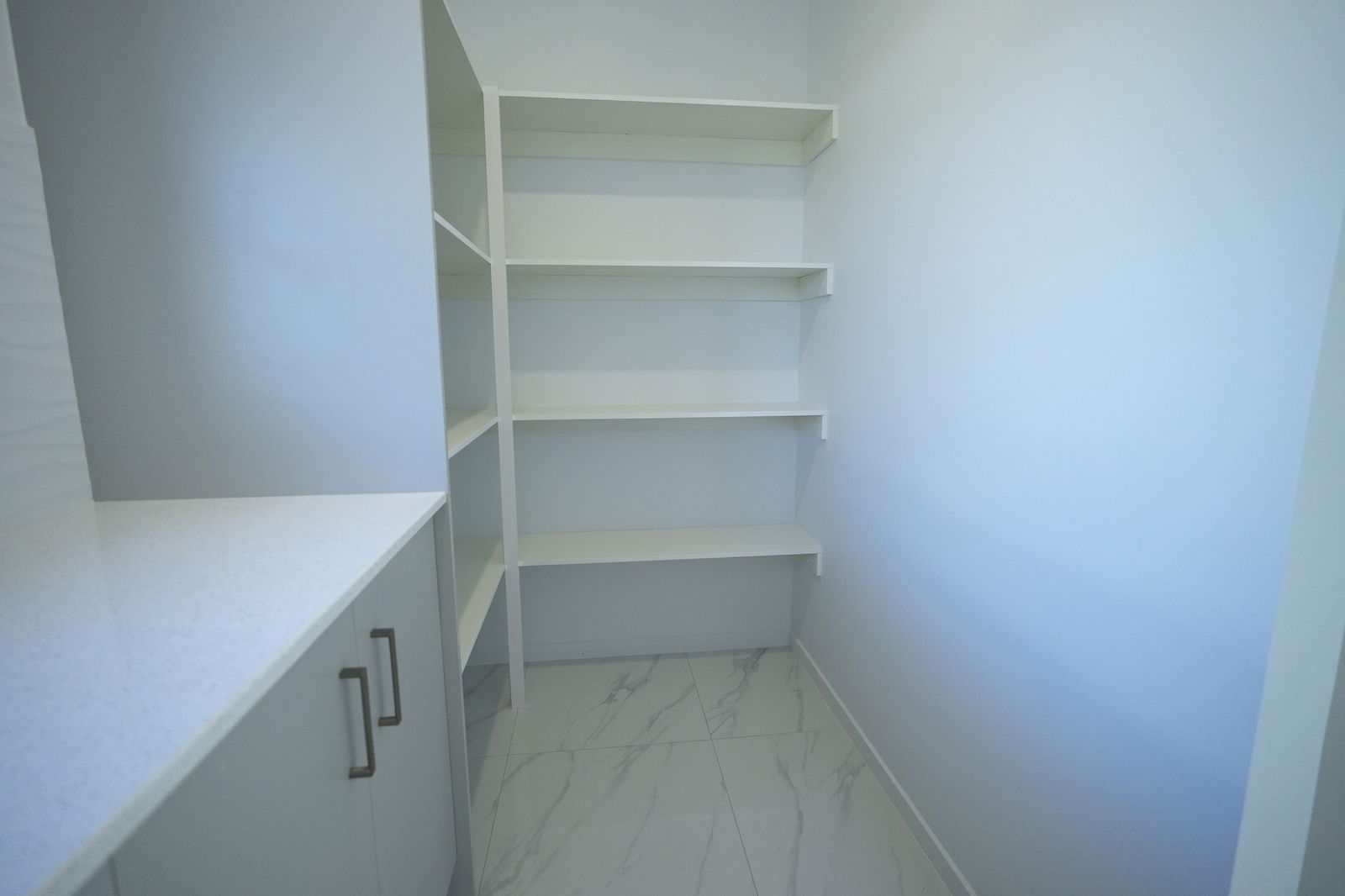 - Oversized laundry with excellent bench space and cabinetry, plus a walk-in linen/storage room opposite.