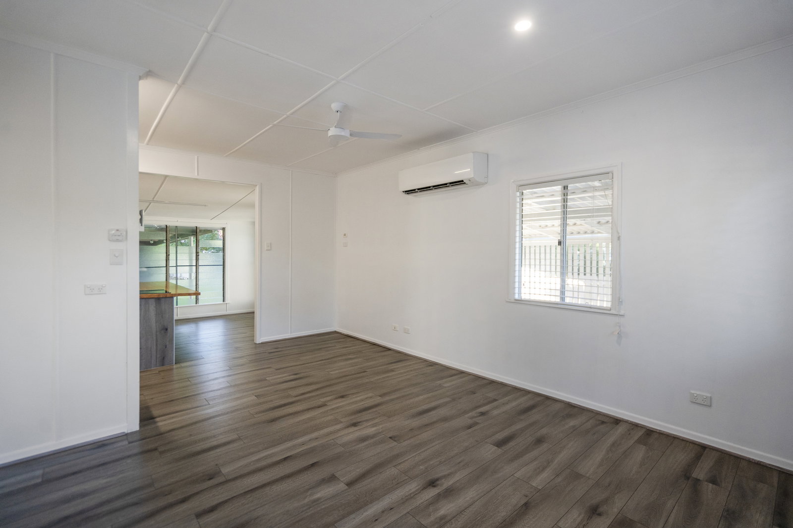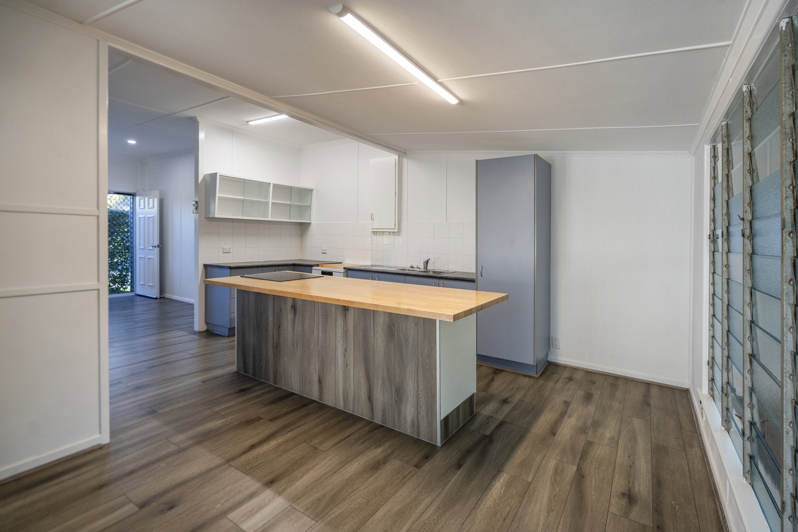 Inside, the home has been updated with fresh finishes and features a light-filled open-plan living and kitchen area with timber-look flooring. The kitchen is modern and functional, complete with good storage, a dishwasher and a large island bench.
