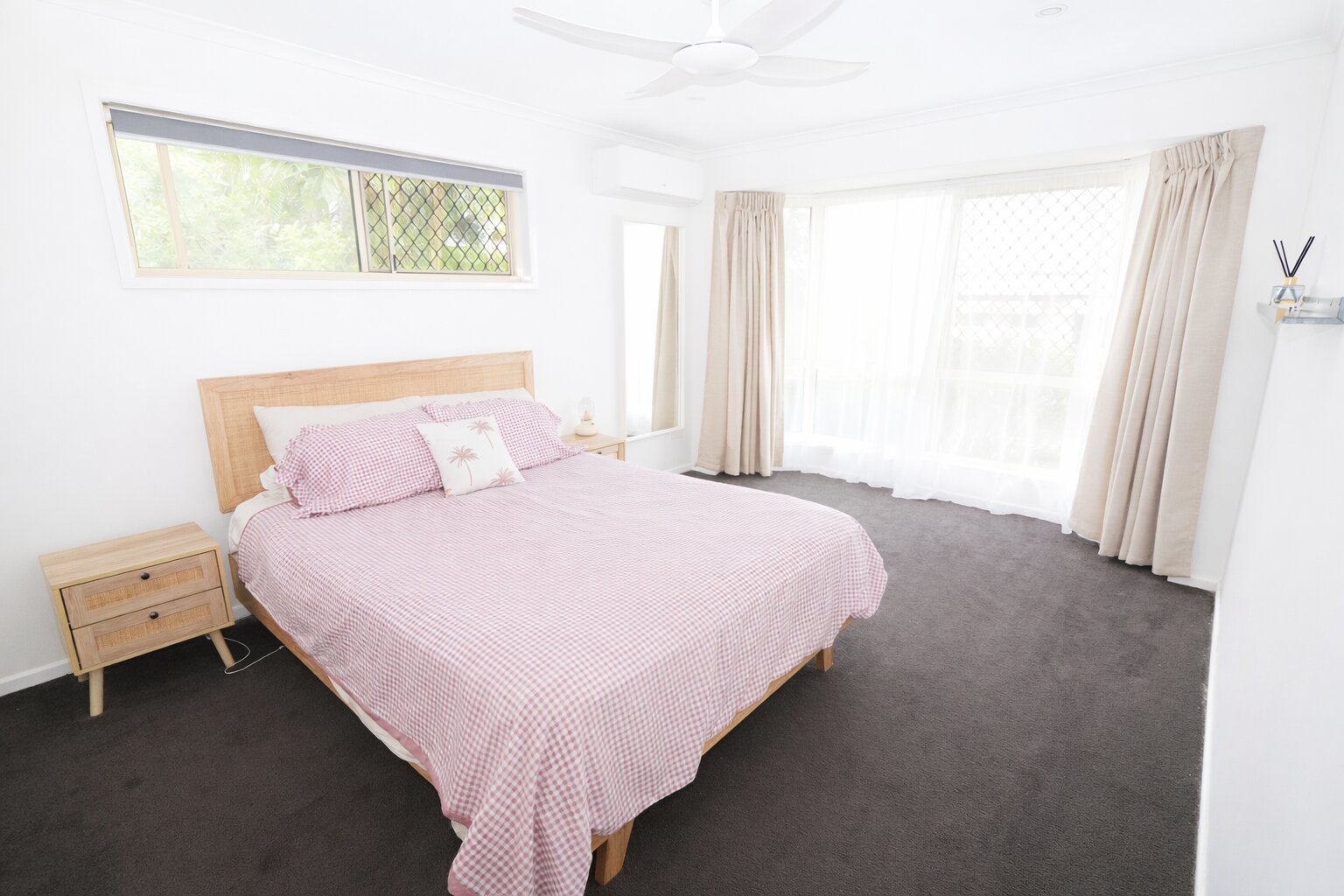 All three bedrooms are carpeted and feature built-in wardrobes, while the modern kitchen and bathroom are finished with quality fittings and fixtures throughout. Air conditioning in the dining area & main bedroom, ceiling fans, and security screens ensure year-round comfort and peace of mind.