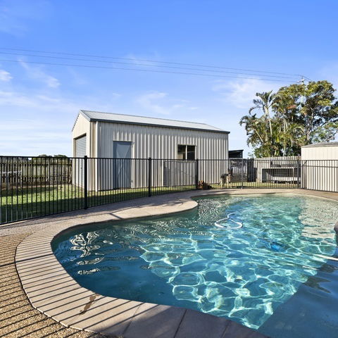 Homes with a pool, shed space and this level of convenience in Kalkie are highly sought after. This one ticks all the boxes for comfortable family living.