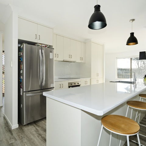 Tucked away at the end of a quiet cul-de-sac and backing onto a peaceful reserve, 32 Pettigrew Drive offers relaxed Kalkie living just minutes to local schools, around 8 minutes to Bundaberg CBD and 10 minutes to Bargara's beaches and cafés.