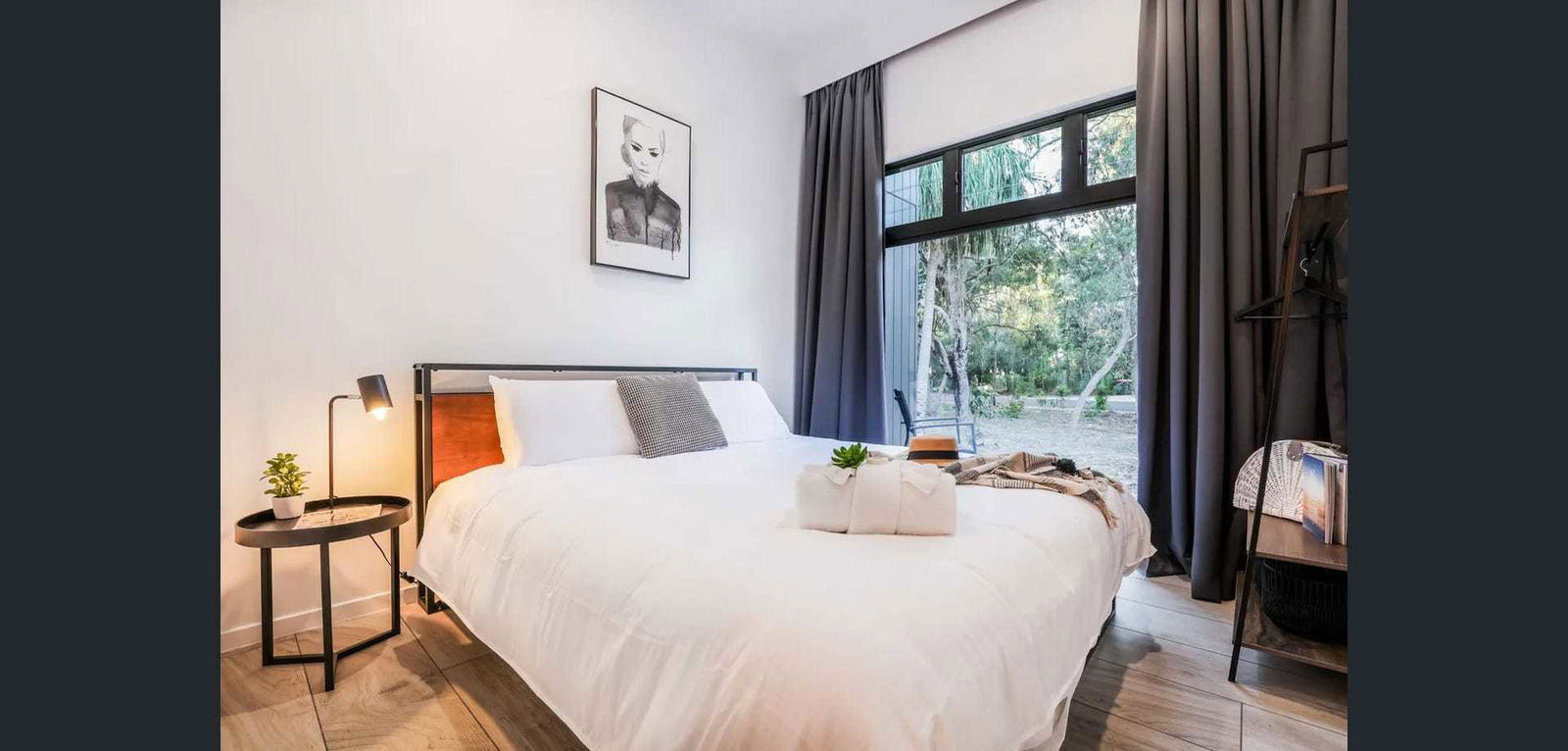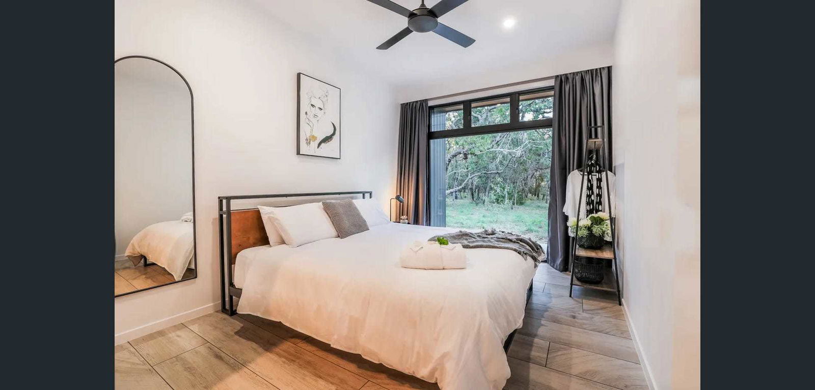 Luxurious master bedroom with King bed, block-out curtains and fans plus Ensuite