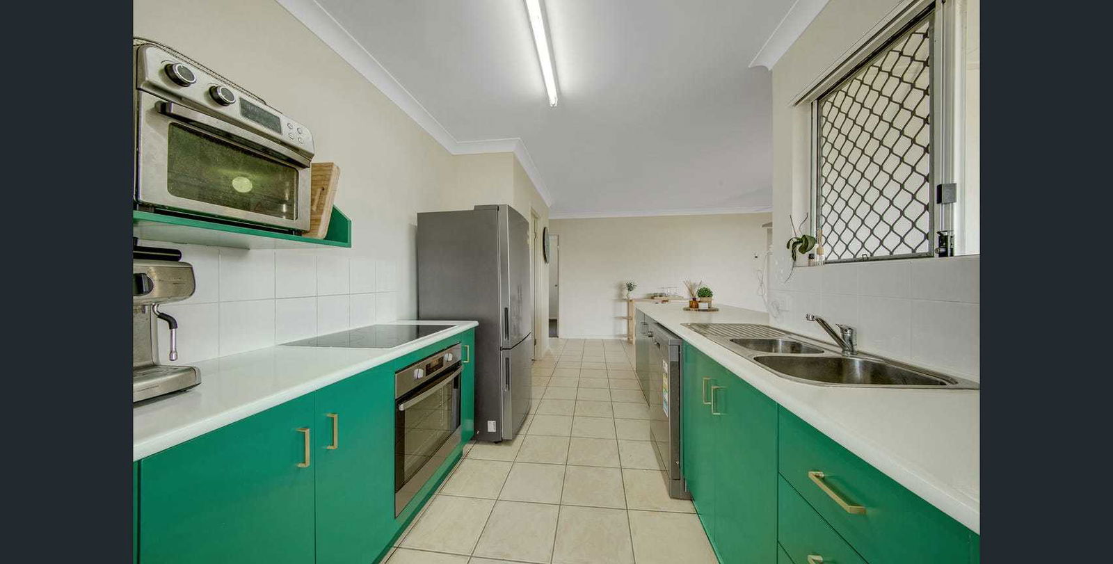 - Kitchen with ample bench space, storage, and appliances