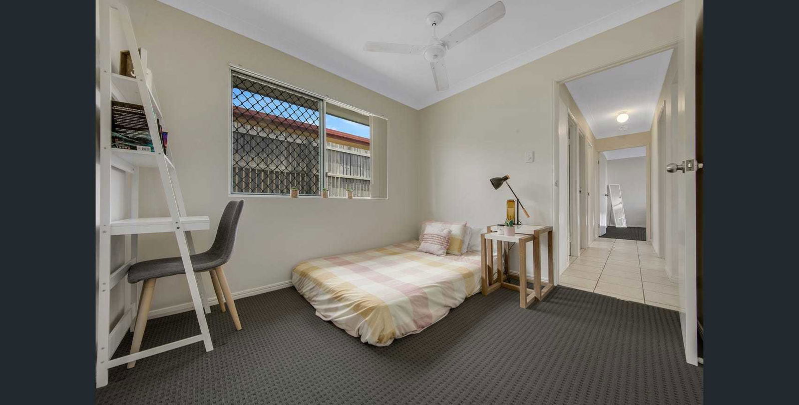 - 3 generous bedrooms, all with built-in wardrobes and ceiling fans