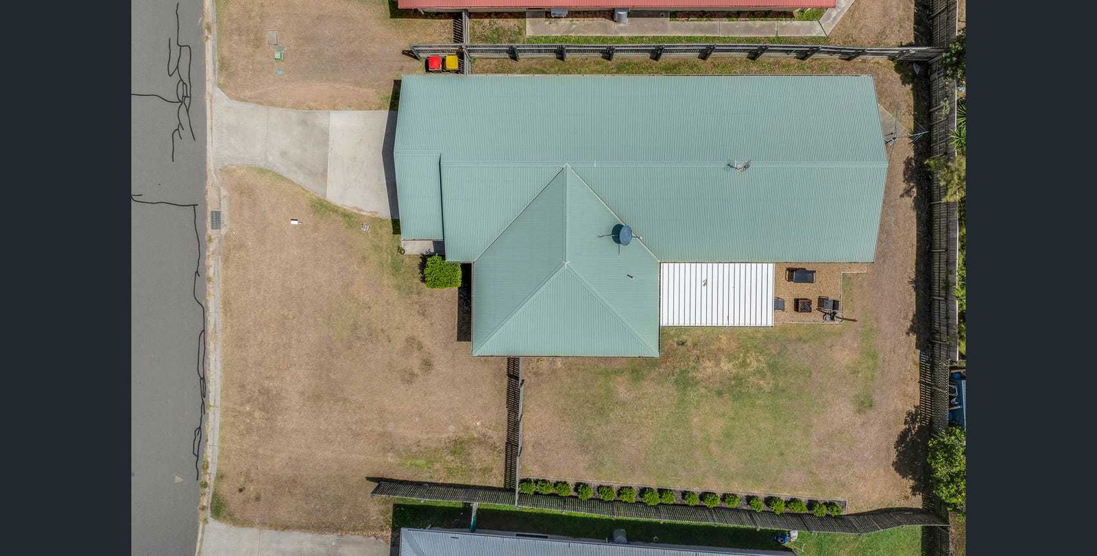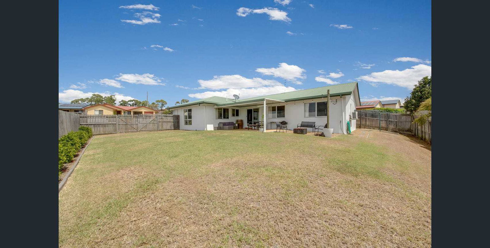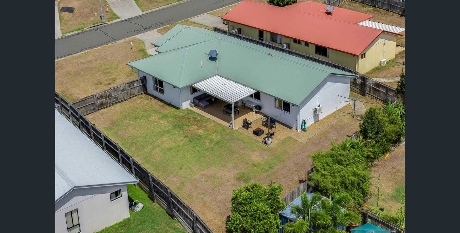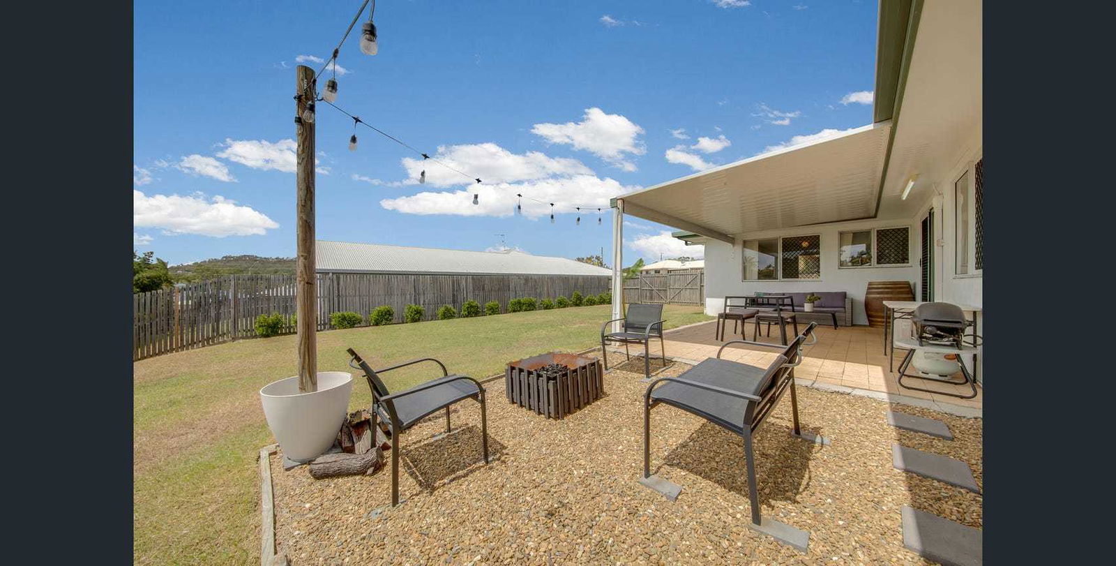 - Covered outdoor entertainment area overlooking the fully fenced backyard