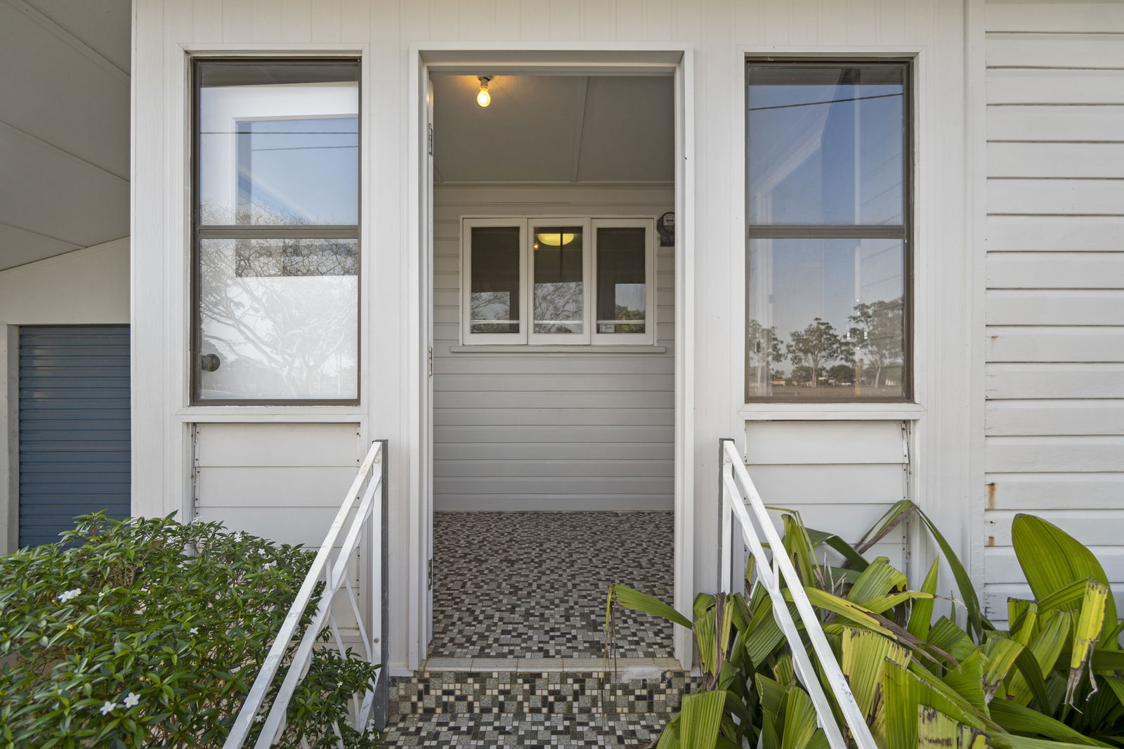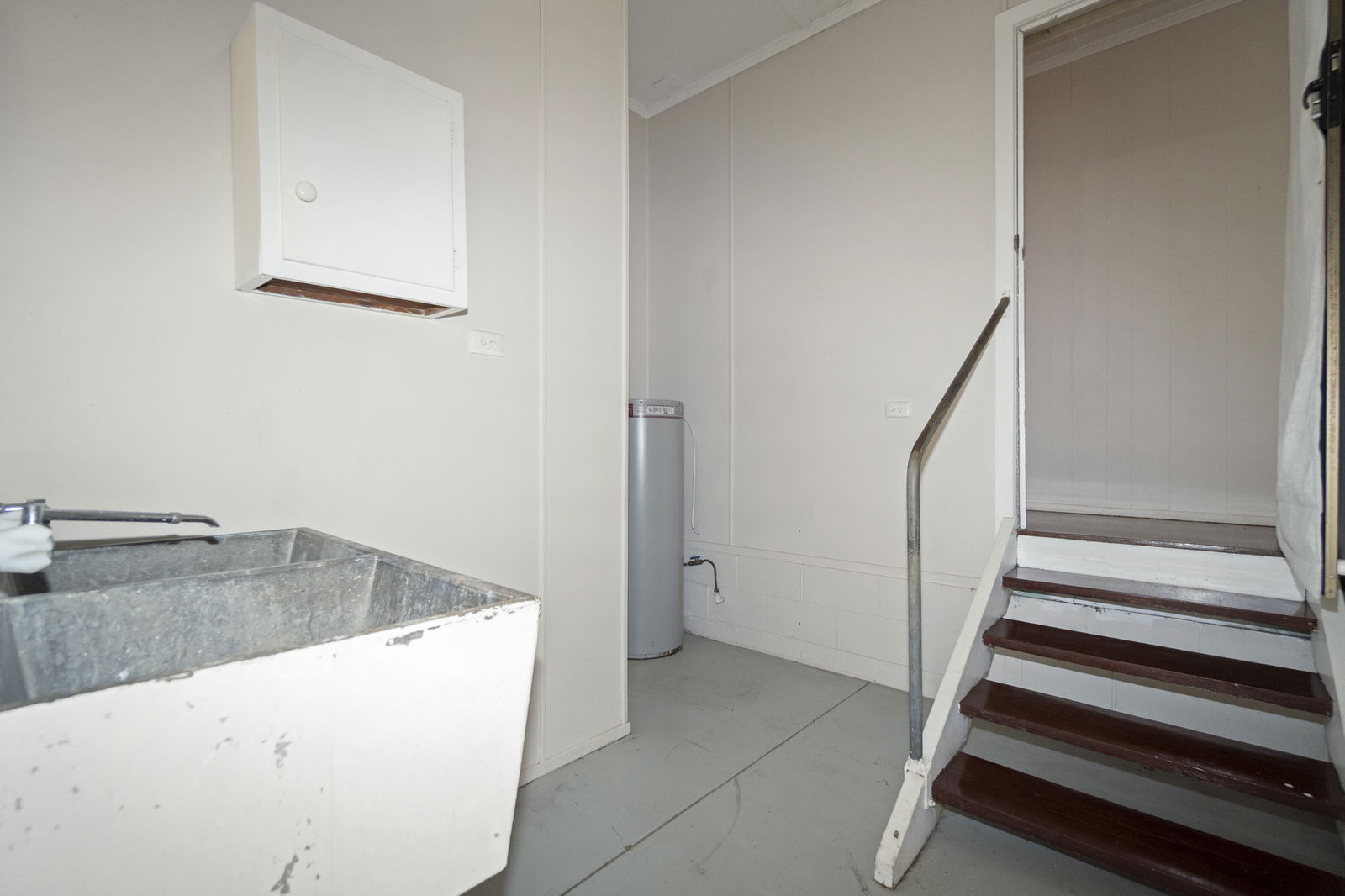 The main residence features three bedrooms, each with ceiling fans, and a well-appointed bathroom with bath, shower, and toilet. A second toilet is located downstairs in the laundry for added convenience. The air-conditioned open-plan lounge and dining area provides a relaxed living space, while the updated kitchen includes generous storage and bench space. Polished timber floors and a bright sunroom add character and charm throughout.