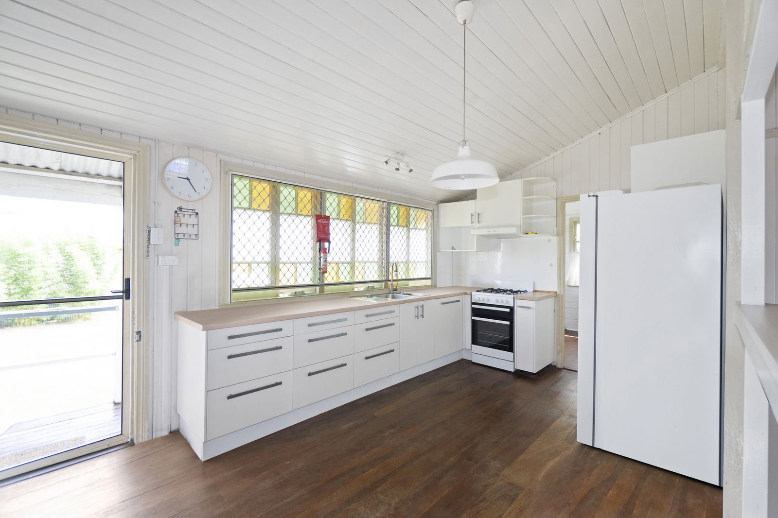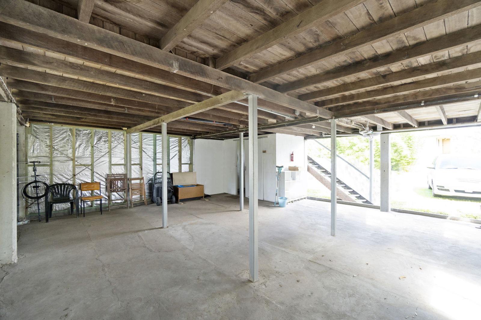 The spacious living area provides flexibility for various furniture arrangements, while the well-appointed kitchen includes plenty of cupboard space, a fridge, and a gas stove. Under the house, there is a large open space complemented by a second bathroom.
