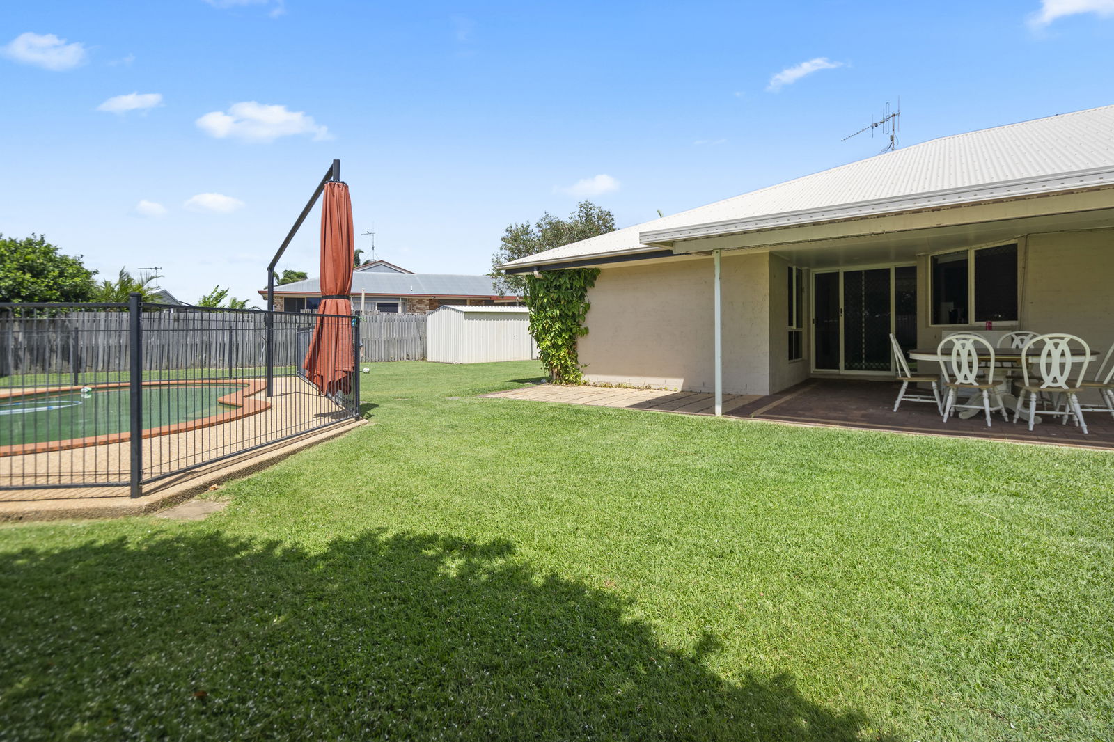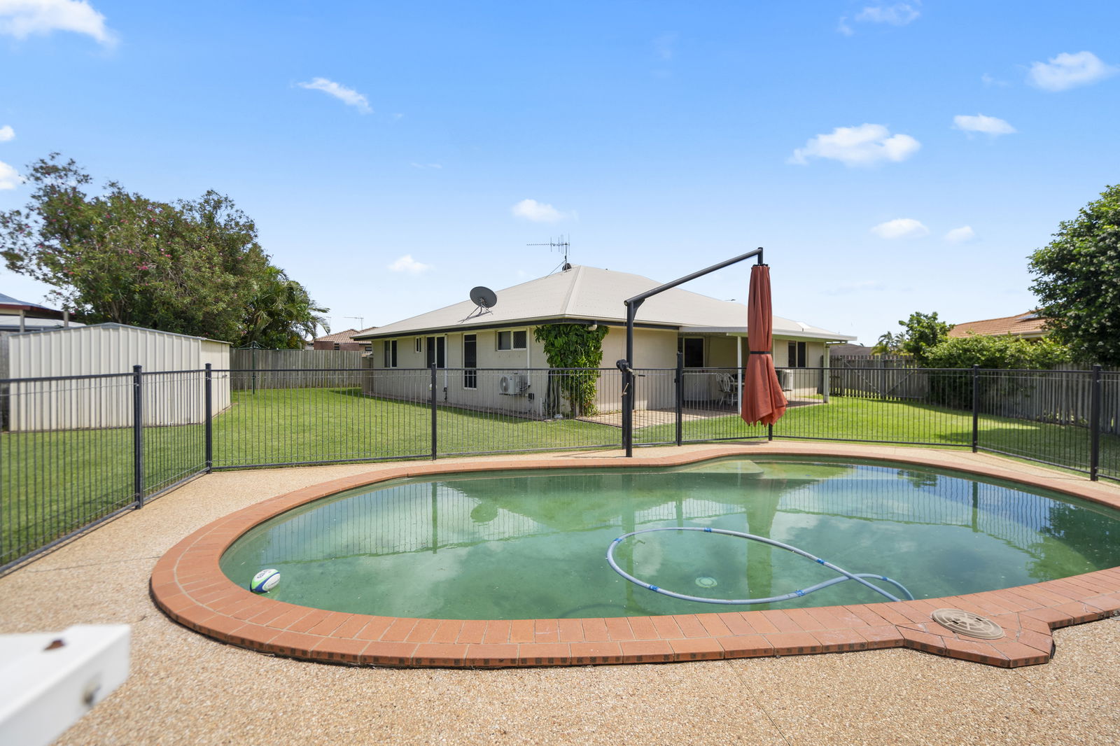 Step outside to a generous covered entertaining area overlooking the sparkling in-ground pool and fully fenced backyard. With plenty of room for kids and pets, plus a handy garden shed, this home delivers practical outdoor living with easy upkeep.