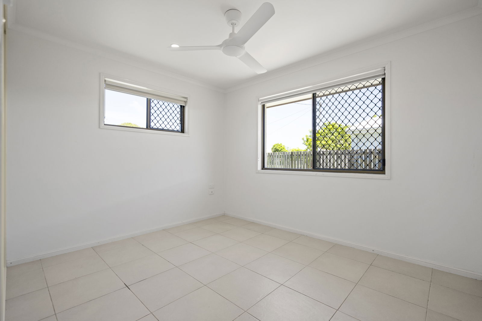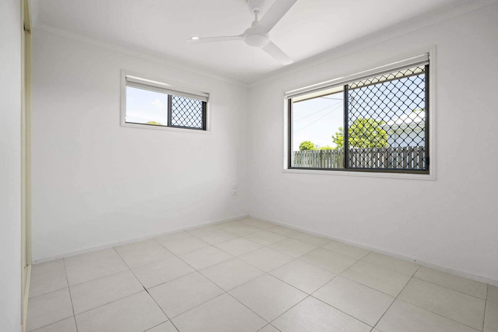 - Three bedrooms, each with built-in robes, ceiling fans and security screens