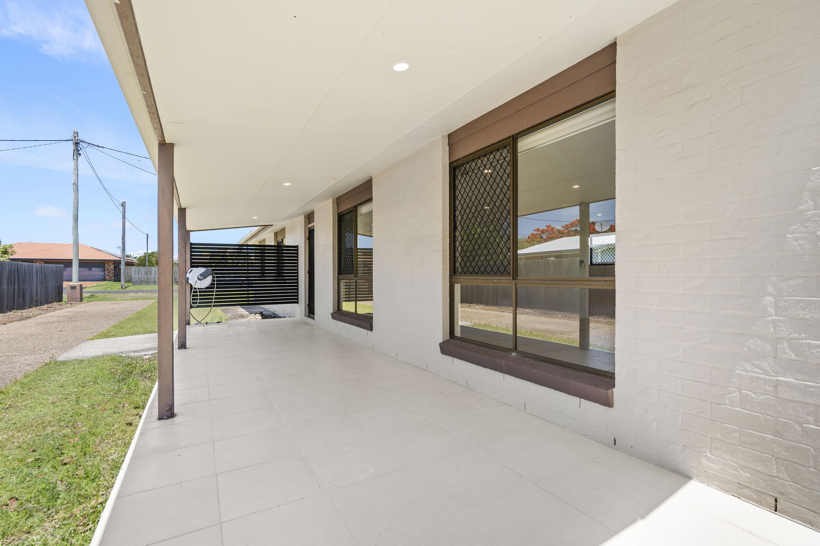 - Covered outdoor entertaining area plus a full-length front patio