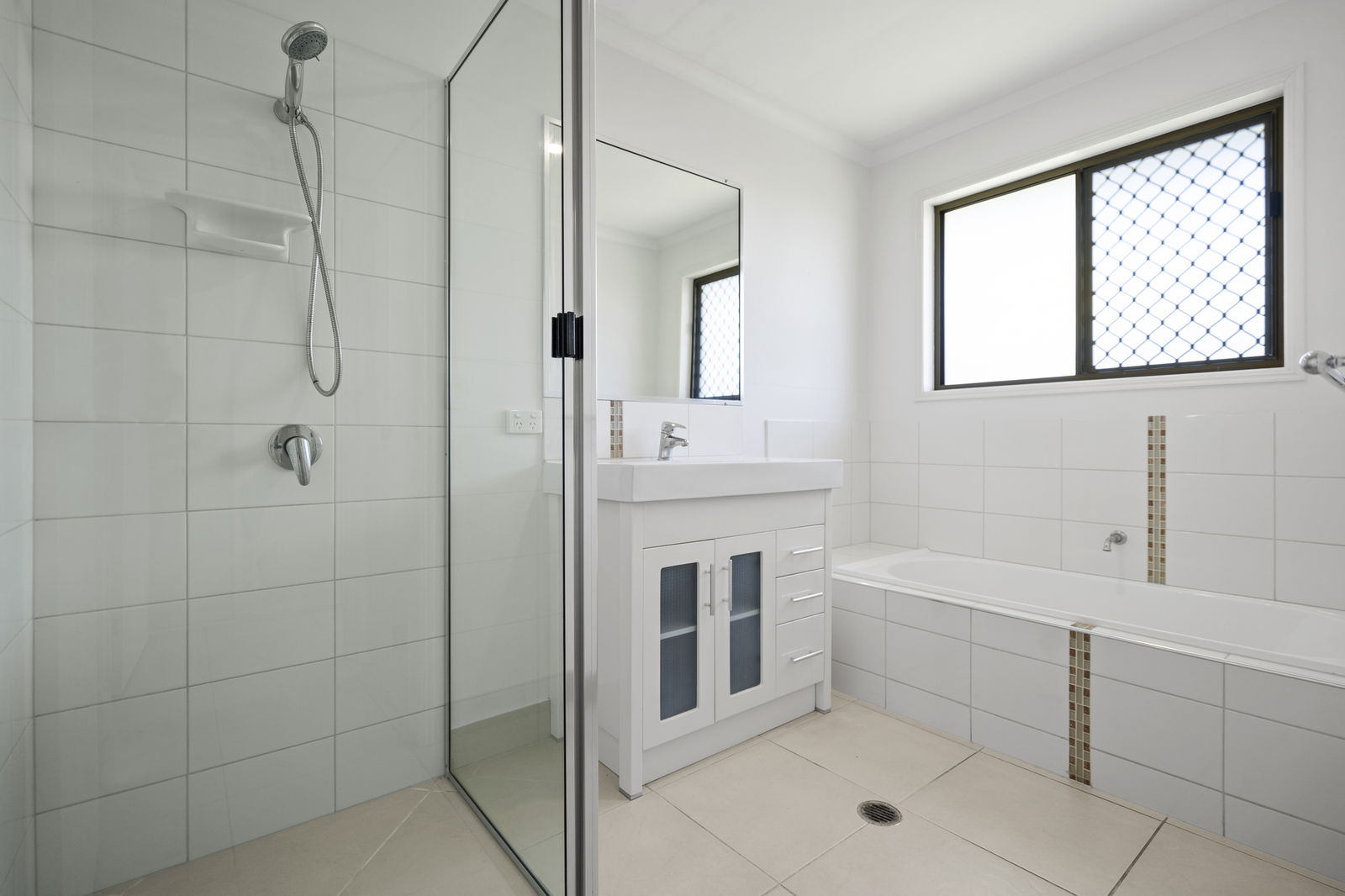 - Light-filled open-plan living and dining, tiled throughout with air conditioning