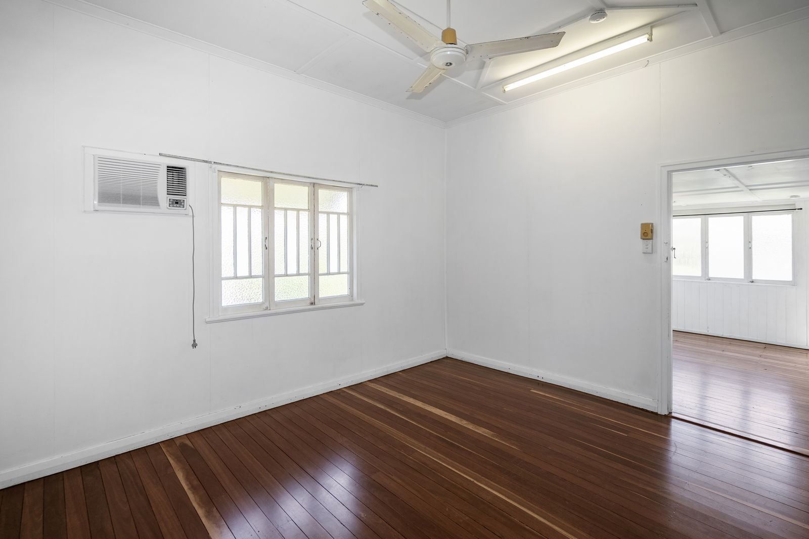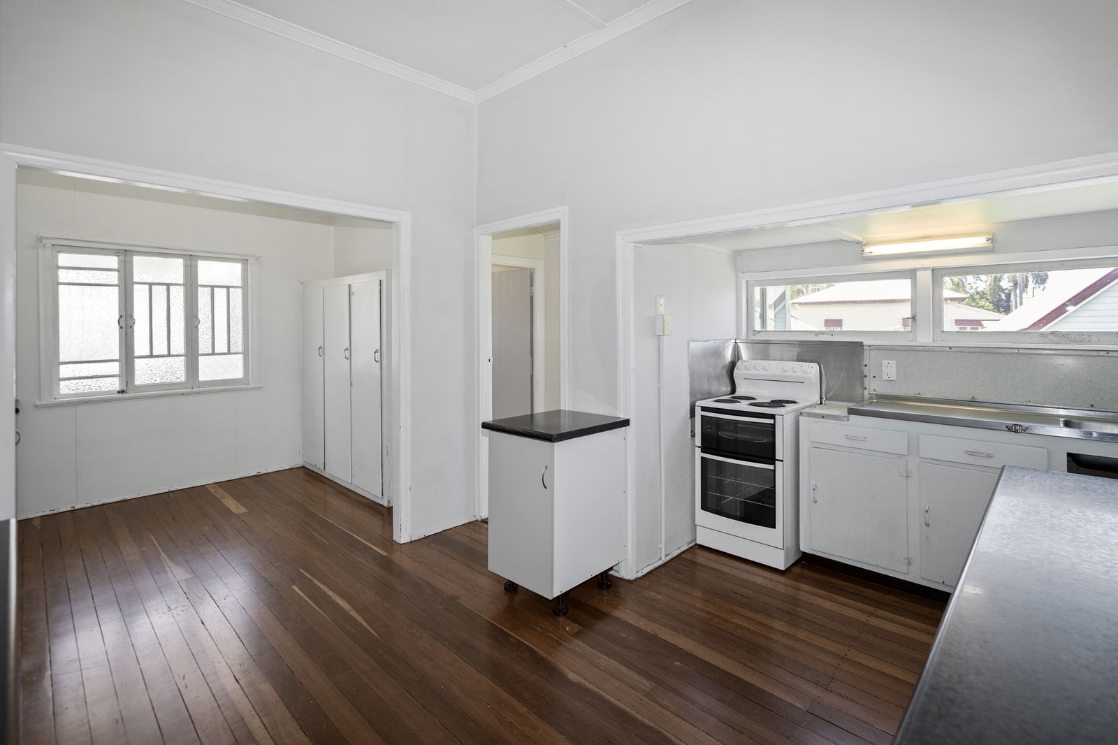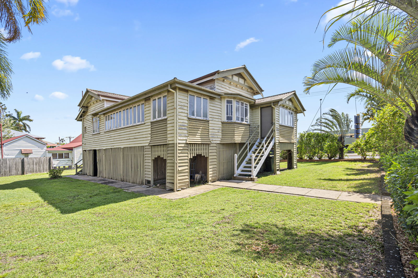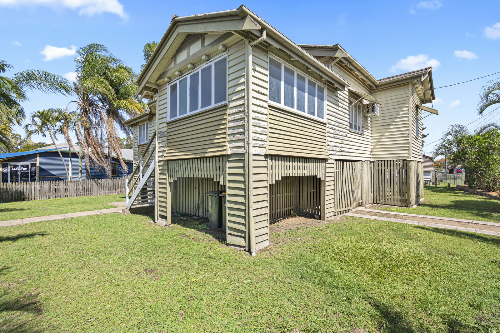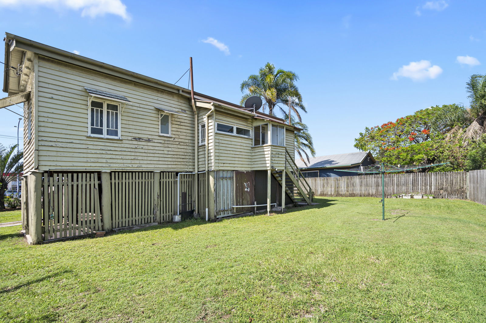 This spacious Queenslander offers comfortable family living across two levels. Upstairs features three bedrooms plus a bright sunroom, perfect for a home office or children's playroom. Enjoy polished timber floors, ceiling fans throughout, and the comfort of air conditioning in the lounge room.
