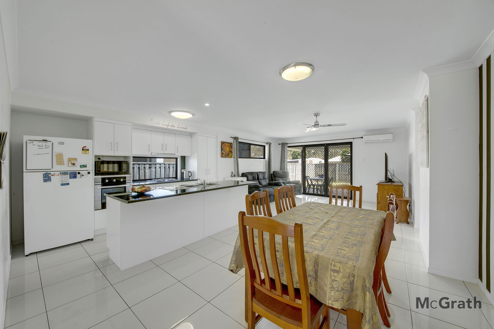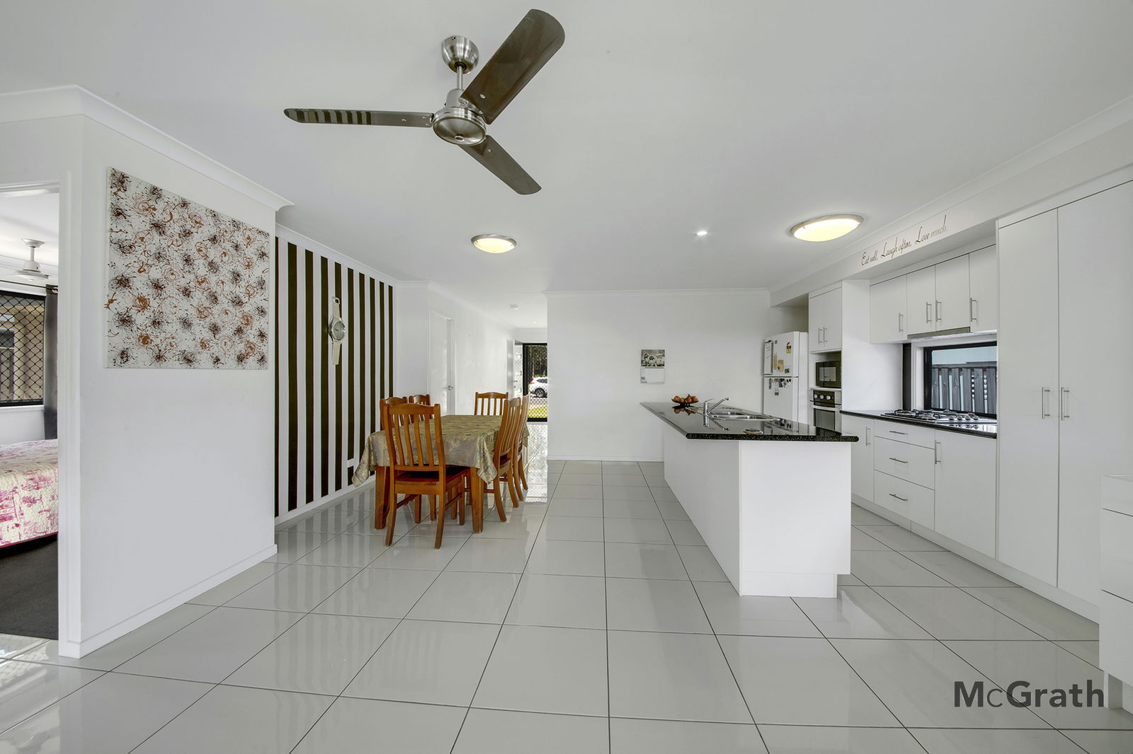 Inside, you're welcomed into a bright open-plan kitchen, dining and living area featuring fresh white tiles and a stylish island bench. All four bedrooms include built-in robes and ceiling fans, with the main bedroom offering the comfort of air-conditioning and a private ensuite, while one of the additional bedrooms also enjoys its own air-conditioning.