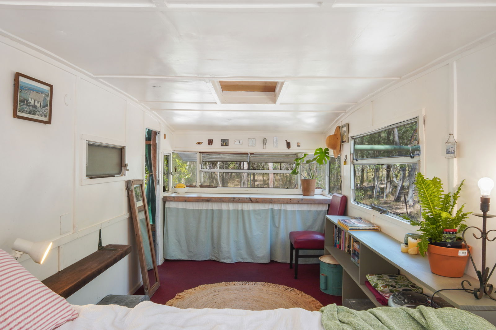Expansive 60m² of decks provide sunlit winter spots and shaded summer relaxation zones. A 22,000L water tank services the main home, while the self-contained caravan/guest house "The Shack" offers its own 6,000L tank, kitchen, screened porch, and firepit-perfect for visitors or extended stays.