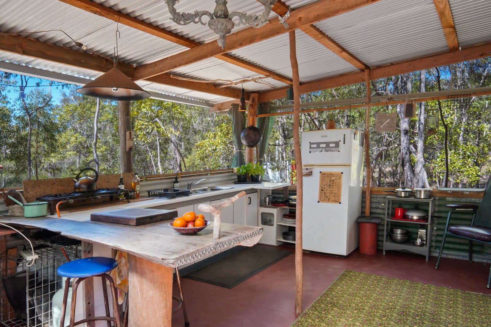 The landscape is alive with lemon-scented gums, grass trees, cycads, and abundant wildlife-from wedge-tailed eagles to pretty-faced wallabies. A fenced house yard provides security for pets, while a seasonal three-way creek system adds to the natural charm.