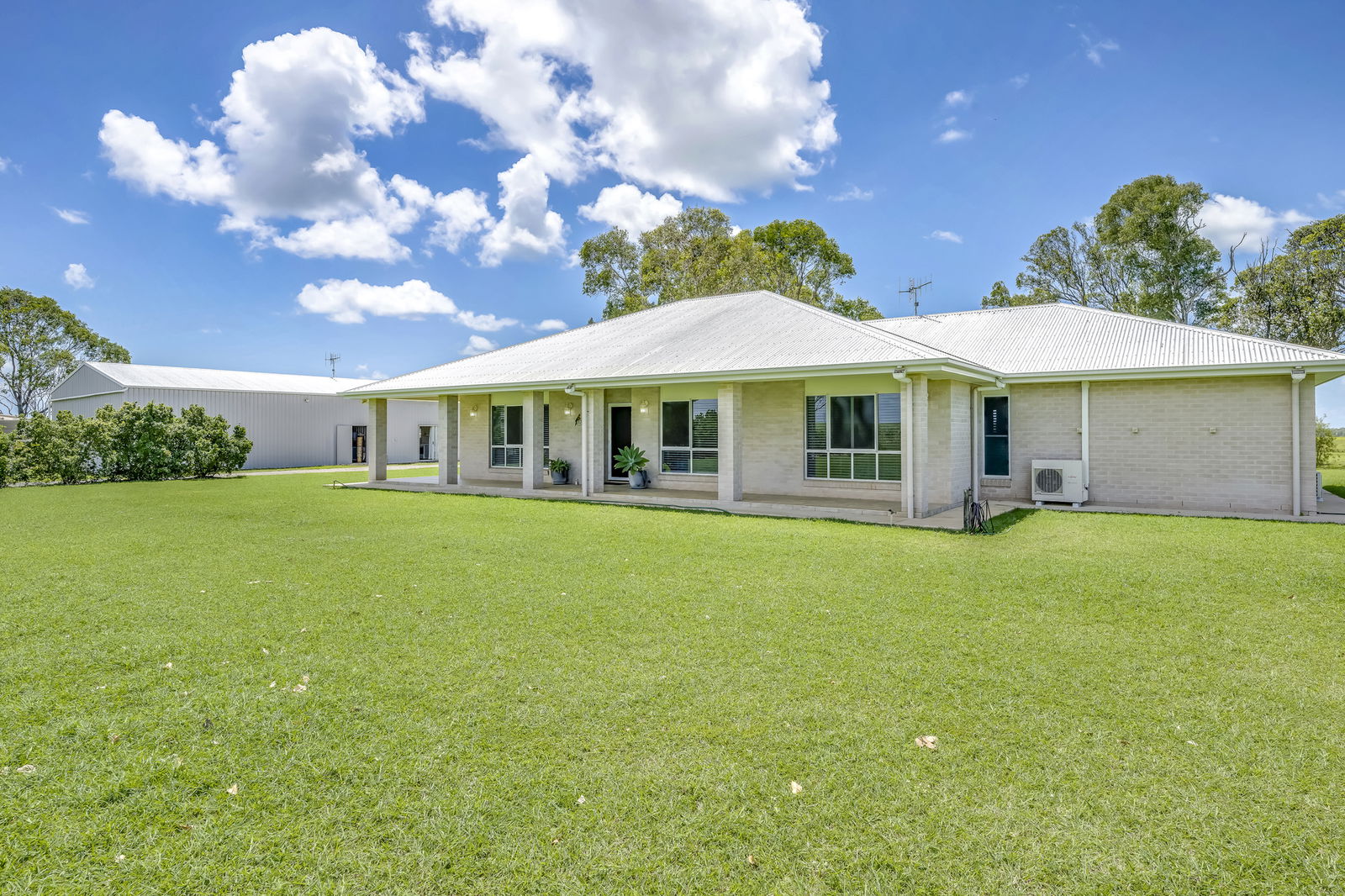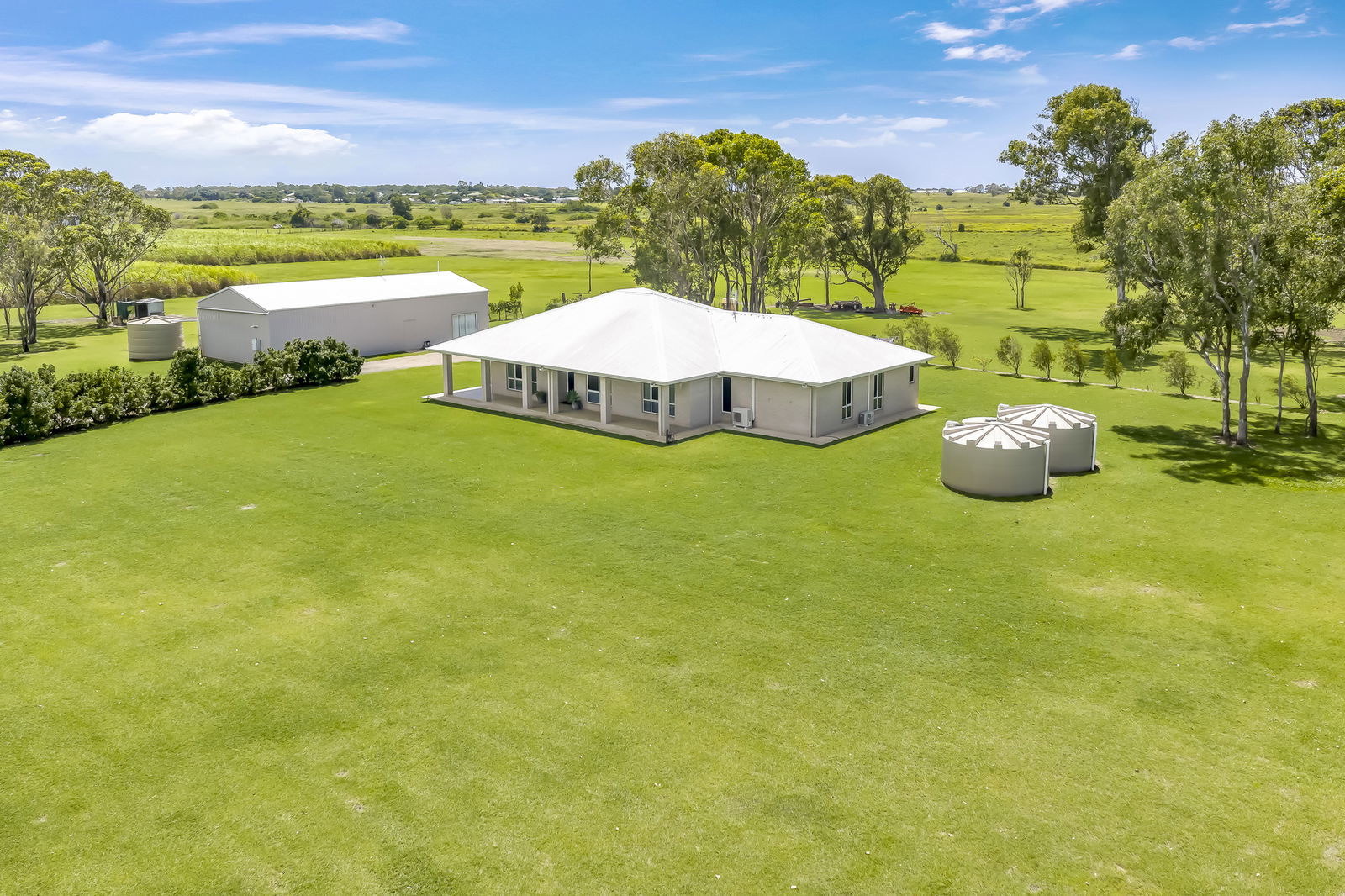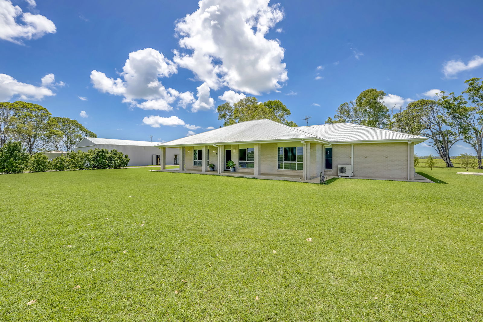 Set on approximately 18 acres along Elliott Heads Road, this expansive country homestead built by Sambrett Homes delivers the ultimate lifestyle package, combining a substantial family residence, wraparound veranda living, and a high-clearance shed complete with self-contained granny flat.