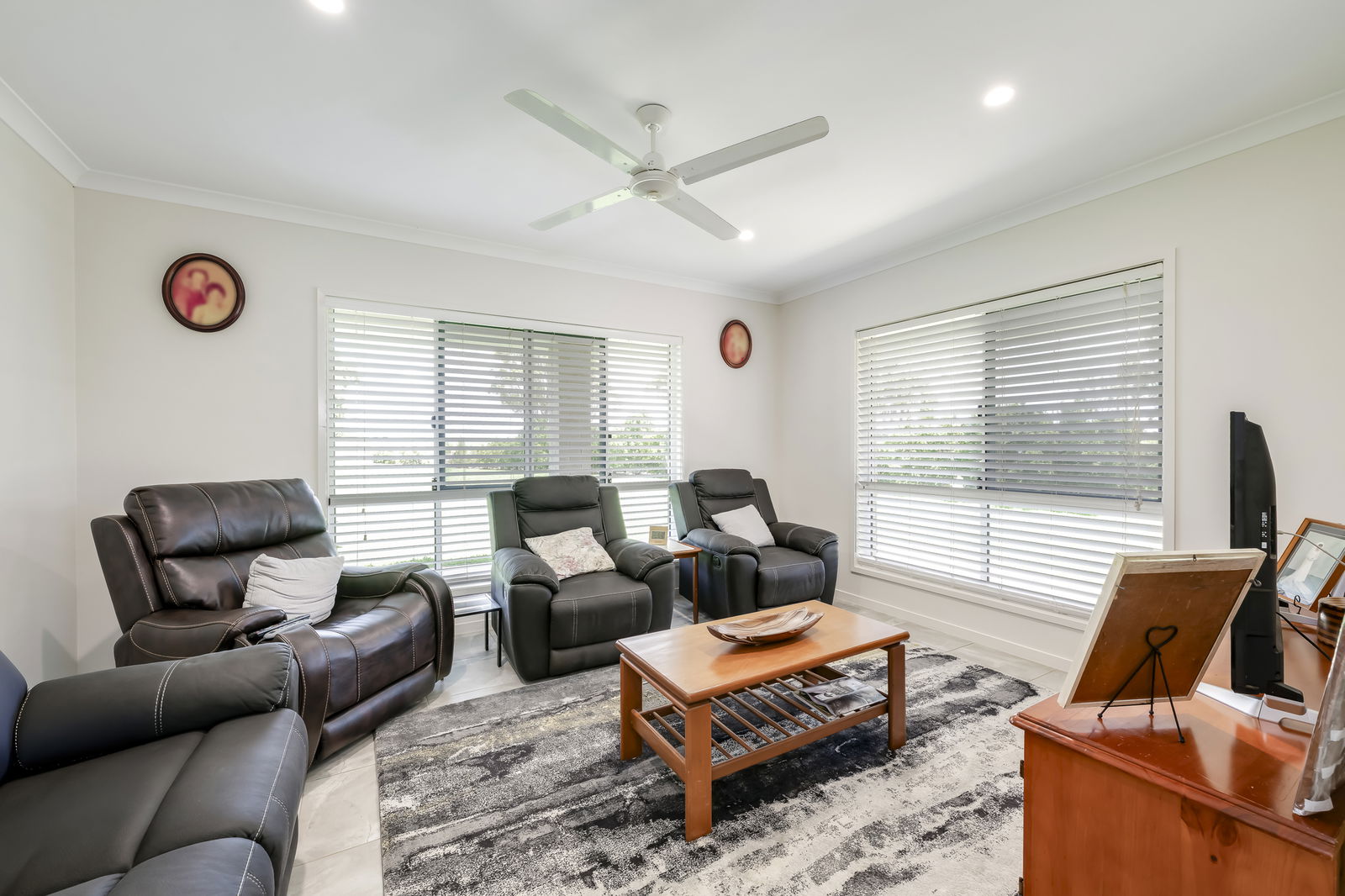 • Dedicated media room with ceiling fan