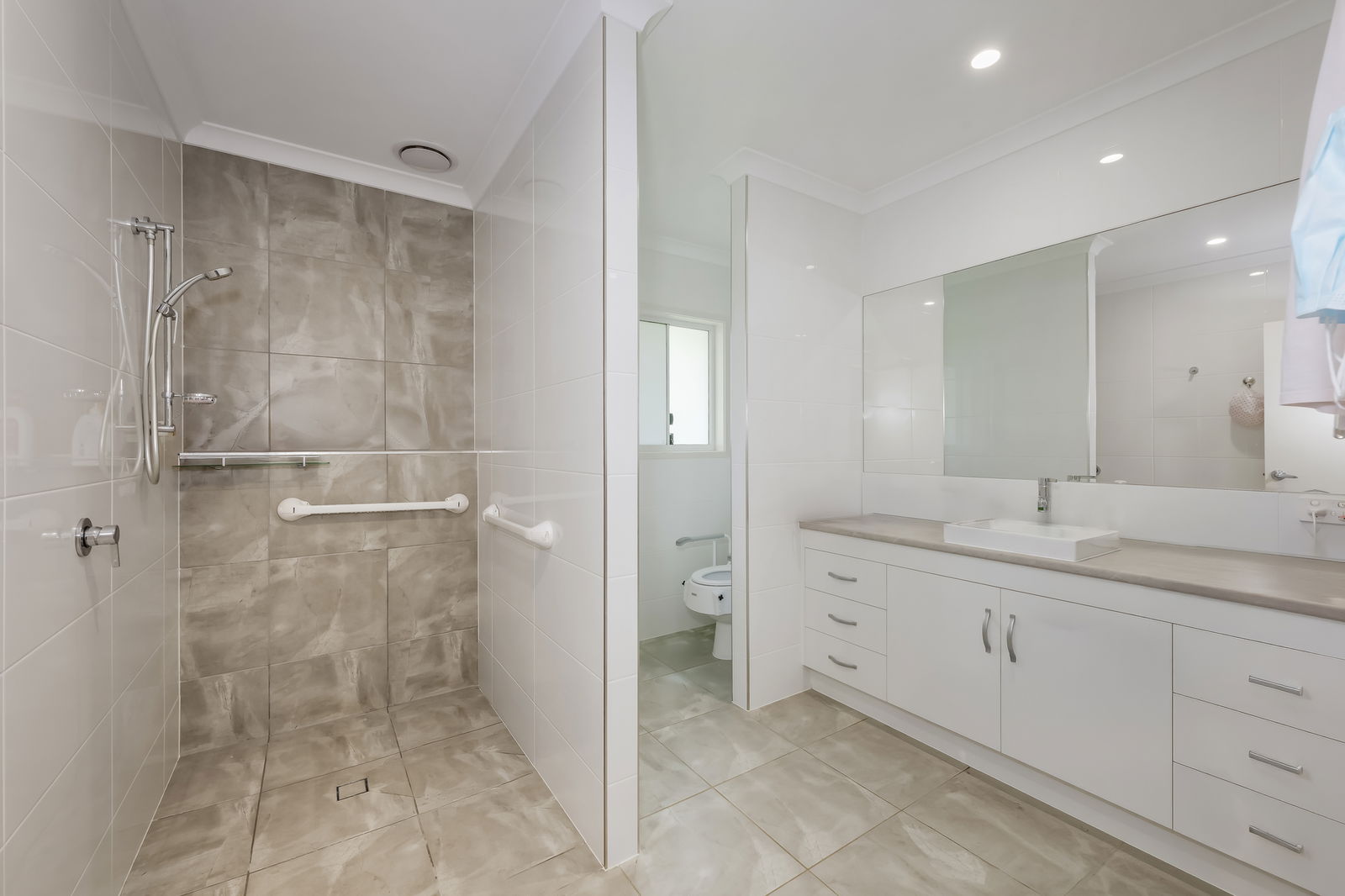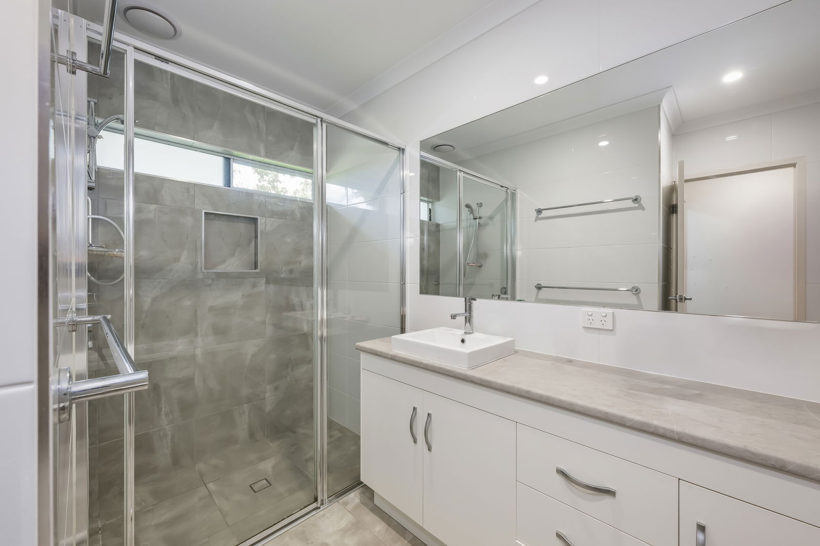• Ensuite with wide open shower, large mirror and single basin vanity