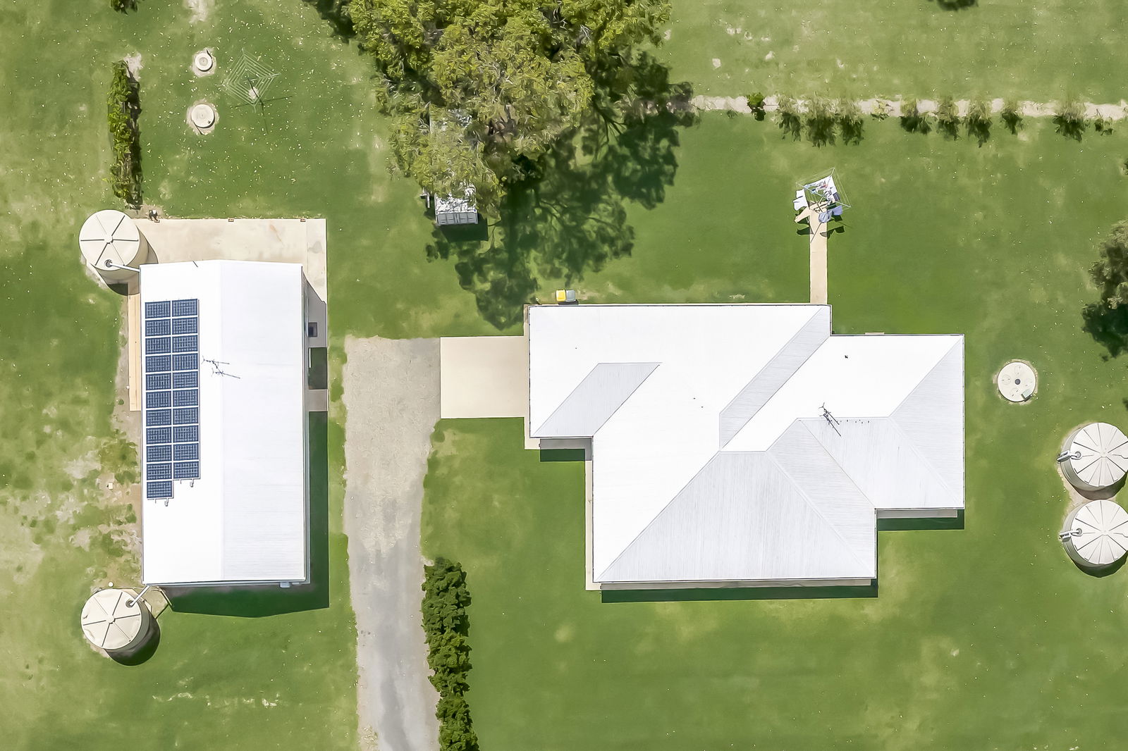 • 22,000L rainwater tanks plumbed to the house