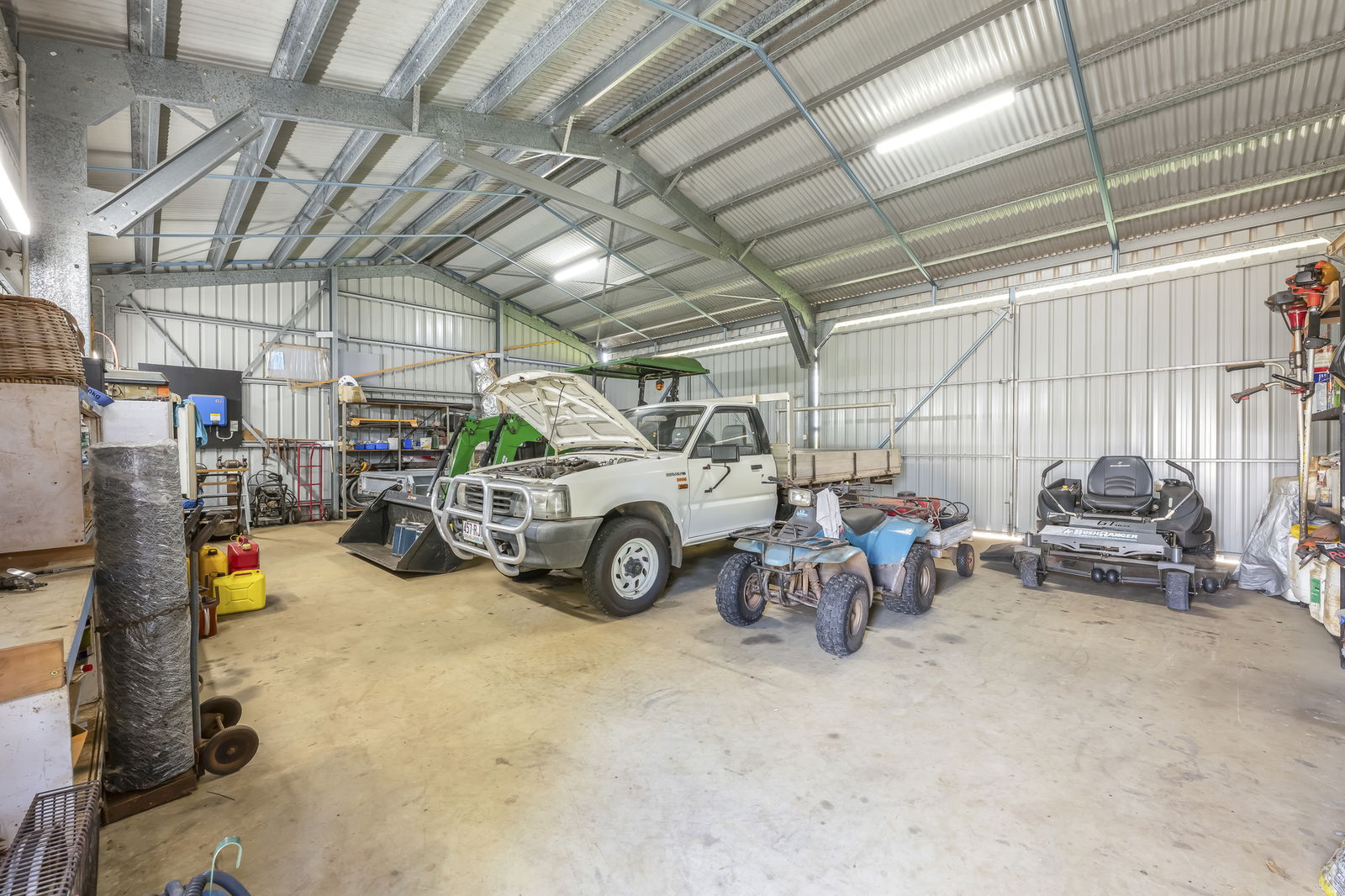 • Large high-clearance farm shed (multiple bays)