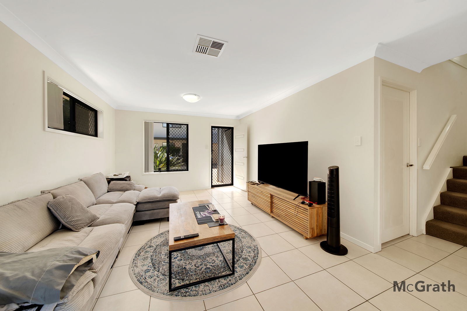 The townhouse features three generous bedrooms, all with built-in robes and ceiling fans, including a master bedroom complete with a private ensuite and its own exclusive deck. Both bathrooms are spacious and modern, with the main bathroom offering the added convenience of a full-sized bath. The heart of the home is the large tiled open-plan living, dining and kitchen area, designed for comfort and functionality, and complemented by ducted air conditioning throughout for year-round climate control. There is also an additional toilet downstairs for convenience.