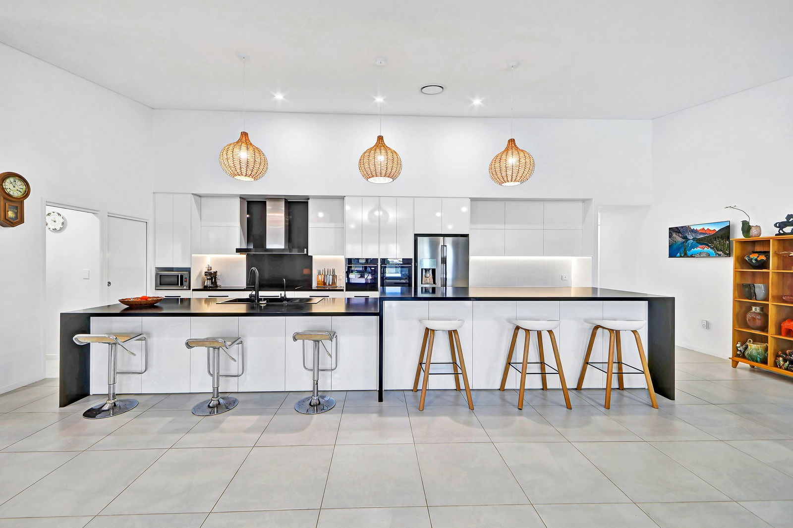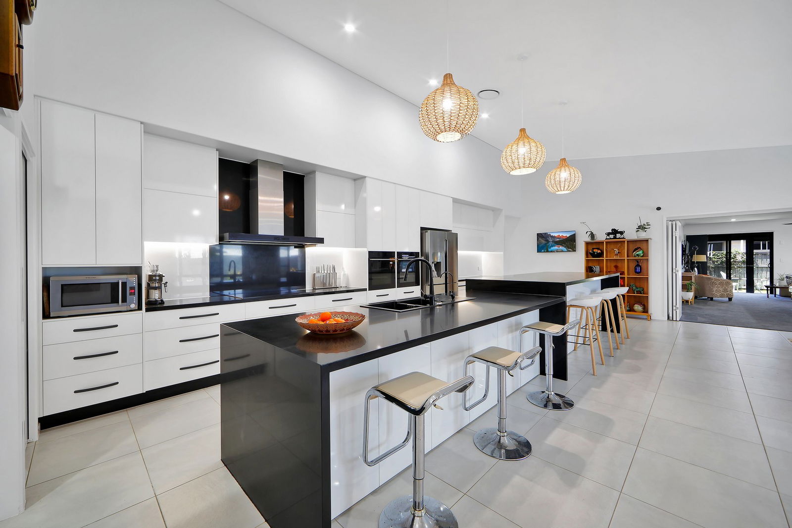 - The gourmet kitchen is a chef's delight with premium 40mm waterfall-edge stone bench-tops, abundant soft-close cabinetry and generous storage.
