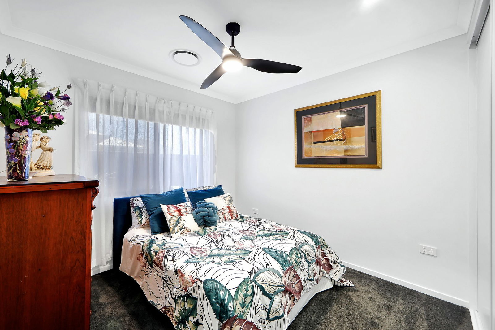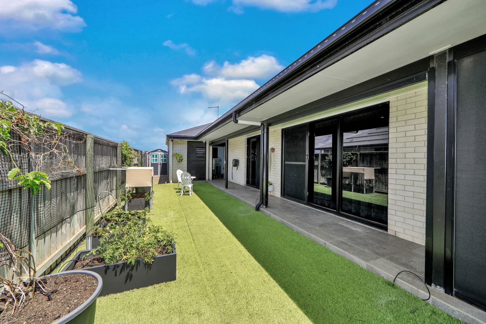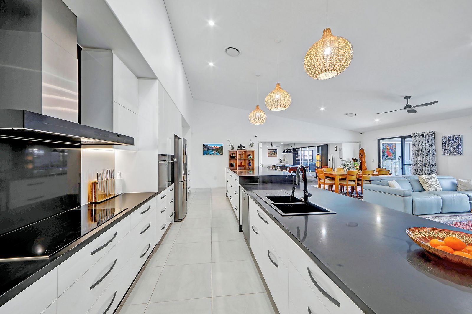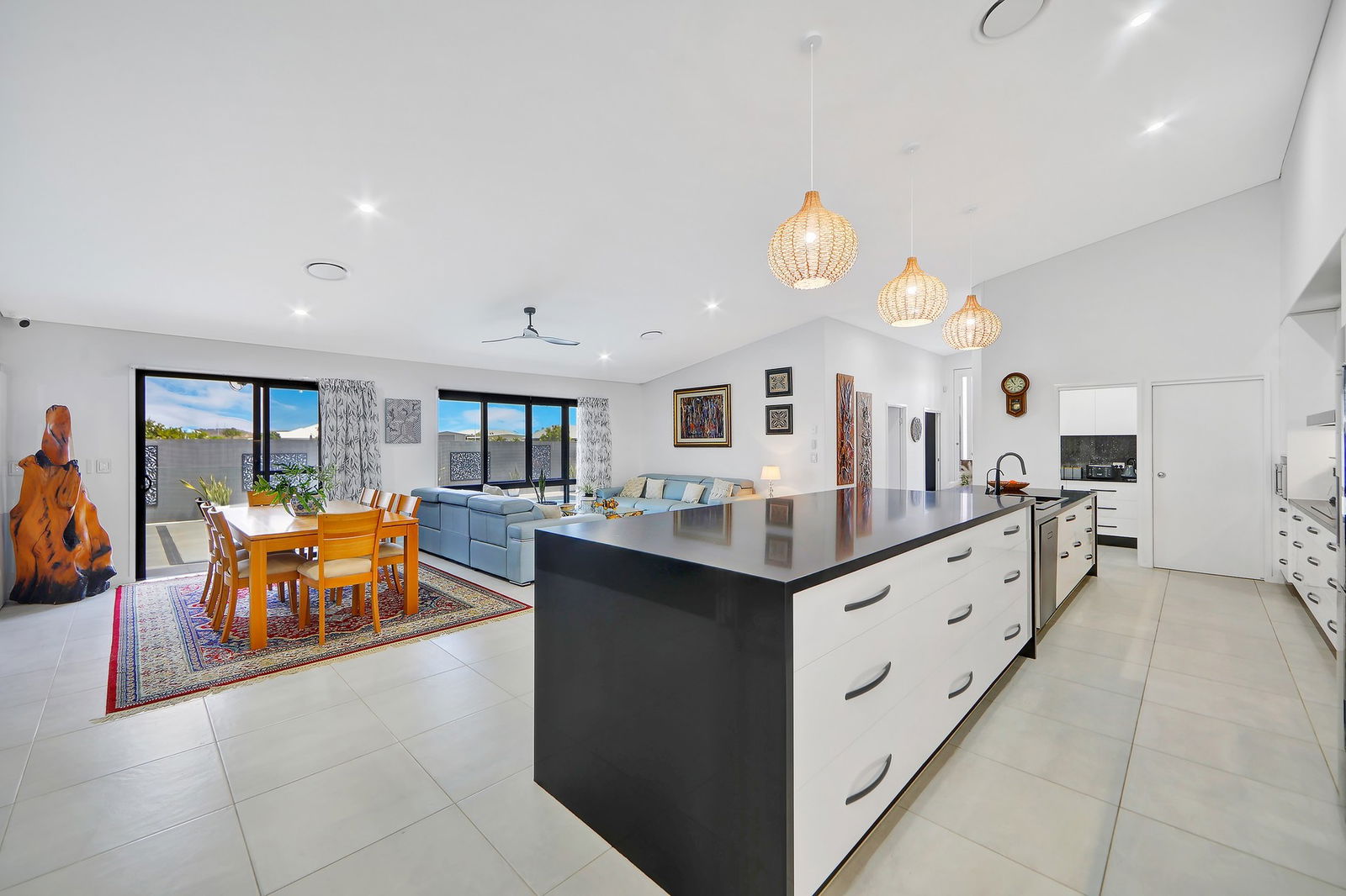 - The open plan living, kitchen and dining with a soaring skillion roof inviting breeze and sunshine year round.
