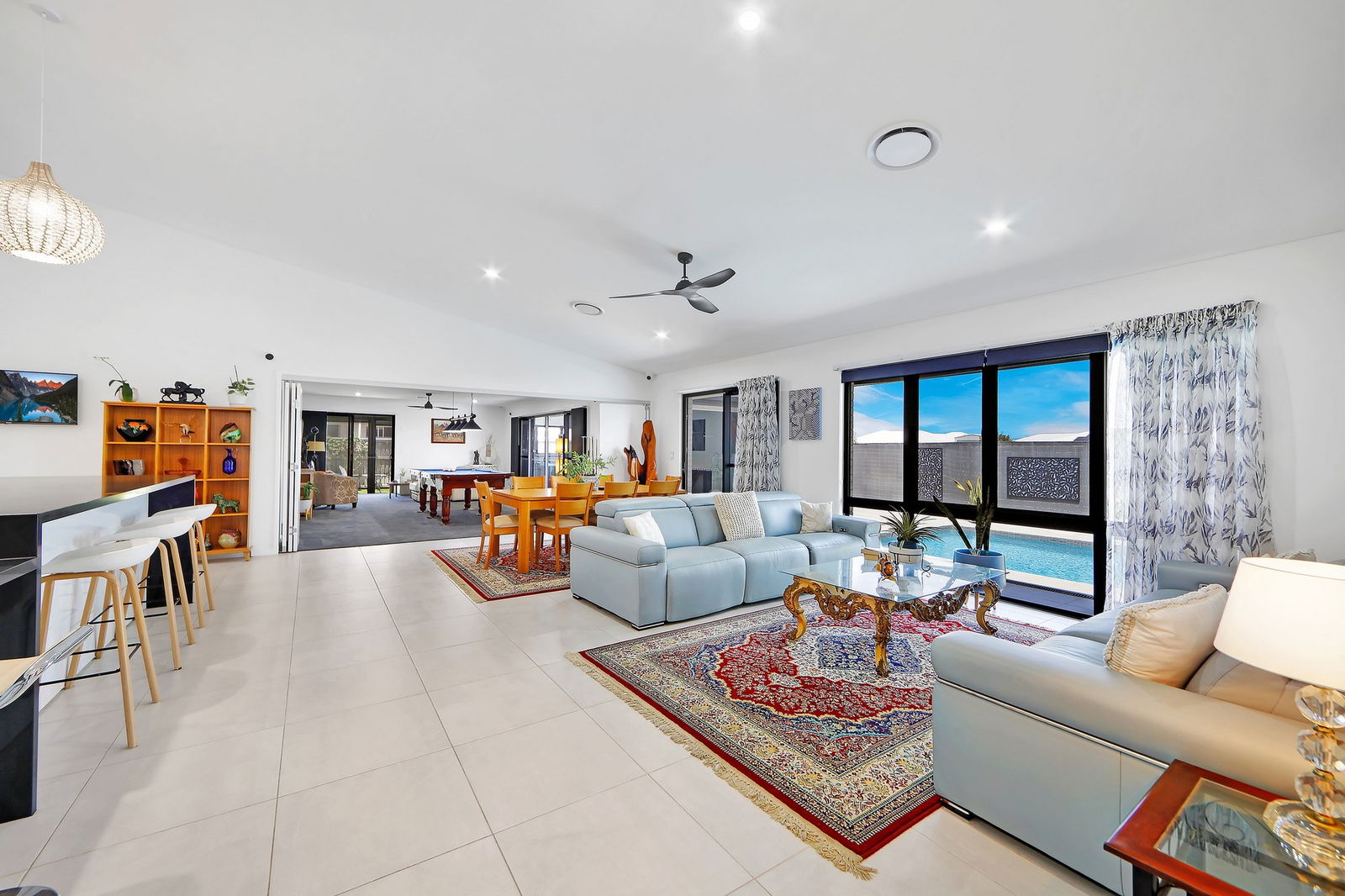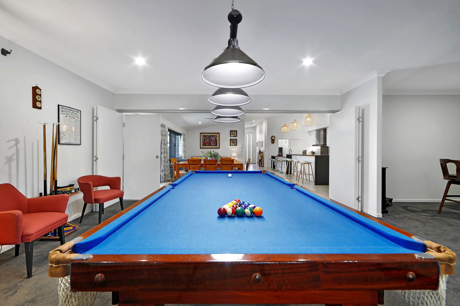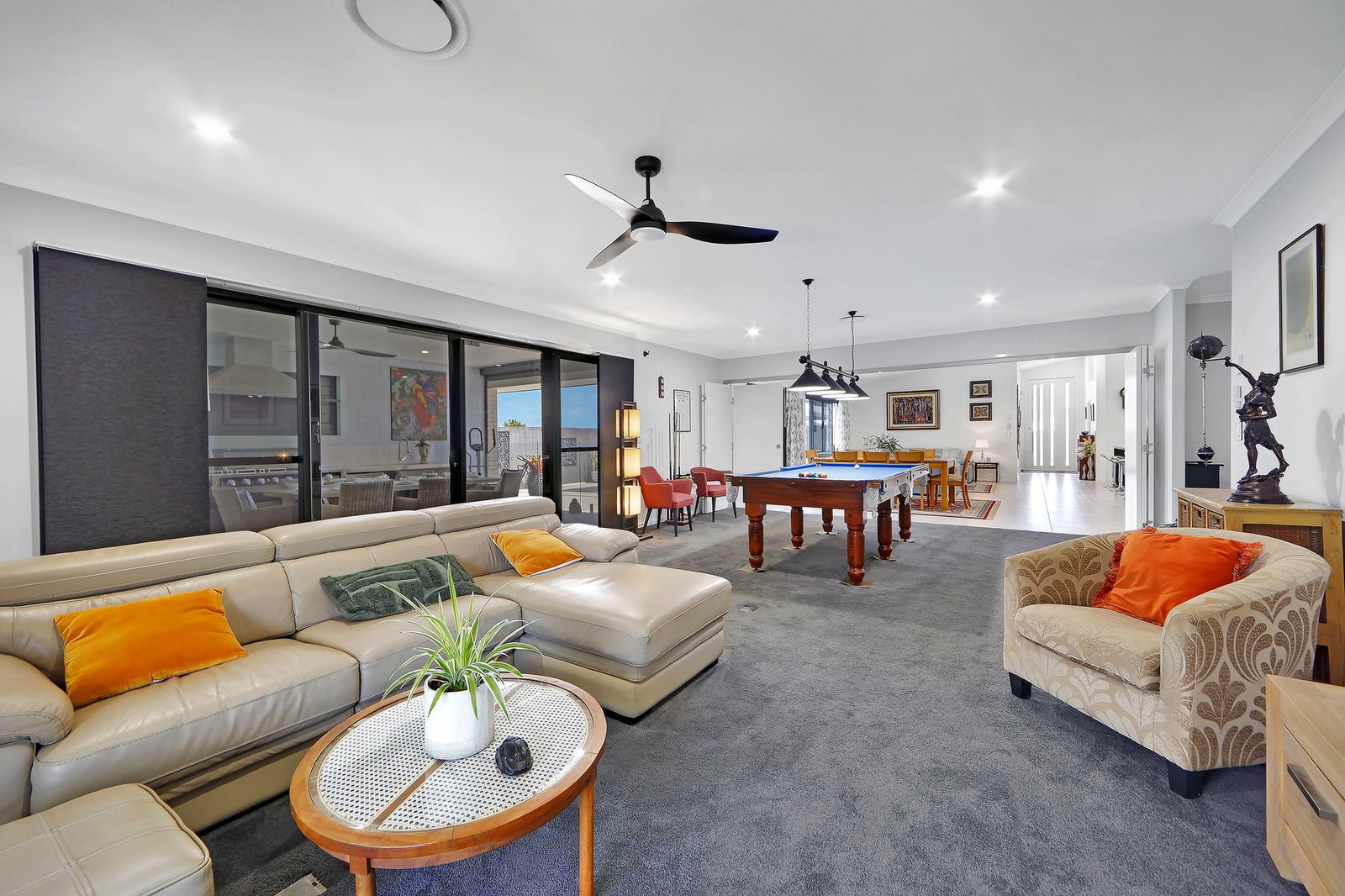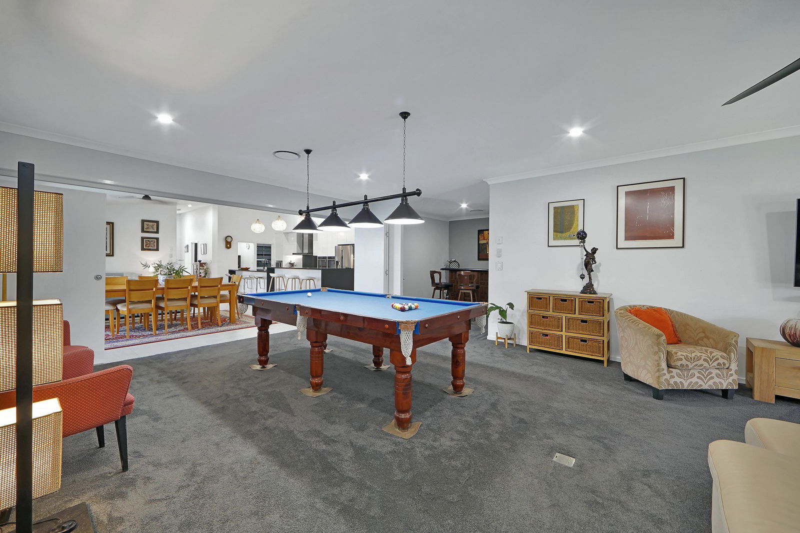 - Multiple living and dining zones including a formal lounge, dining, informal family room and oversized rumpus/billiards room with bar nook.