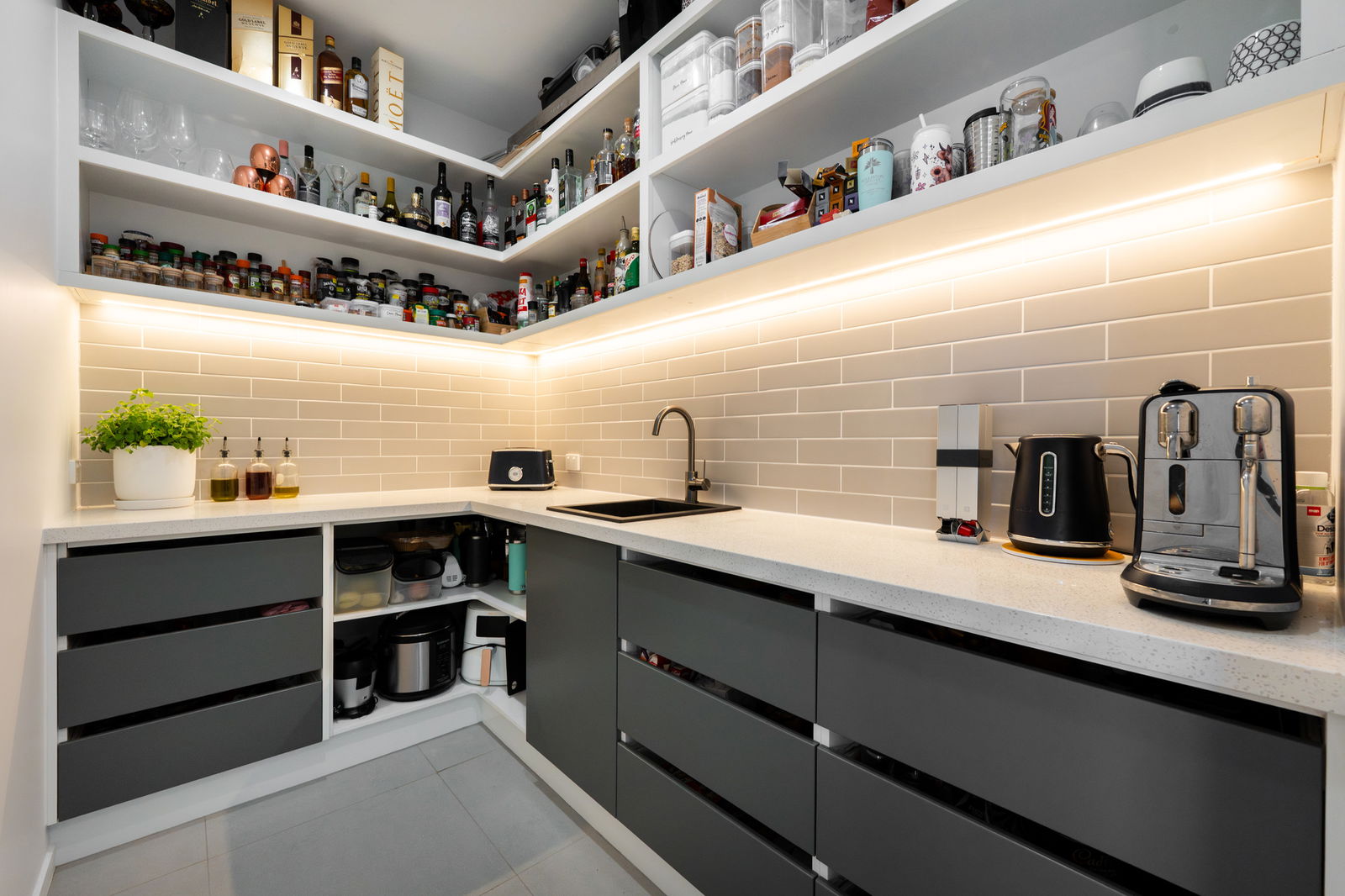 • Huge butler's pantry with sink, storage, and soft-close cabinetry