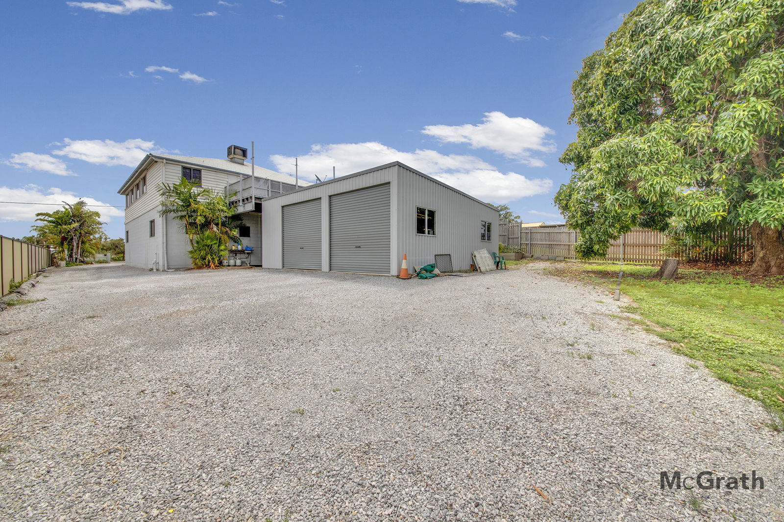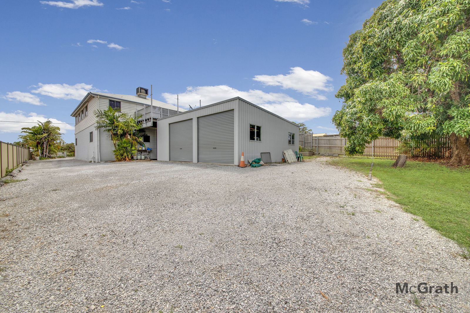 4-car accommodation plus air-conditioned workshop with storage for boats, trailers, or a caravan.