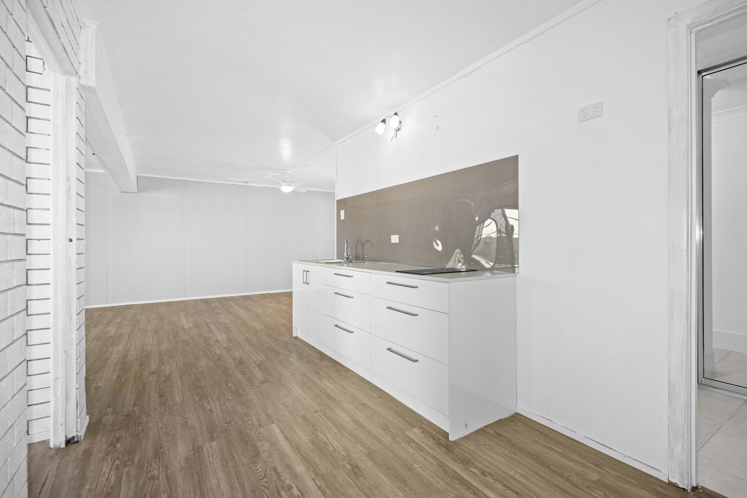 • Downstairs – open-plan living with front and rear sliders, kitchenette (sink + 2-burner ceramic cooktop), large bathroom, laundry, entry sitting room and 4th bedroom