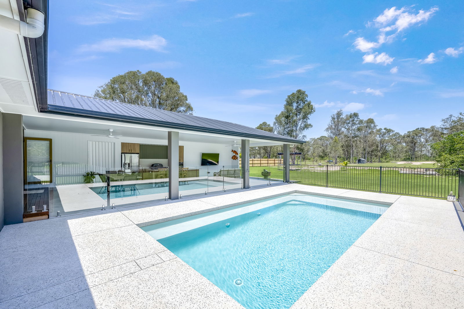 - Large in-ground pool, designed for both leisure and entertainment