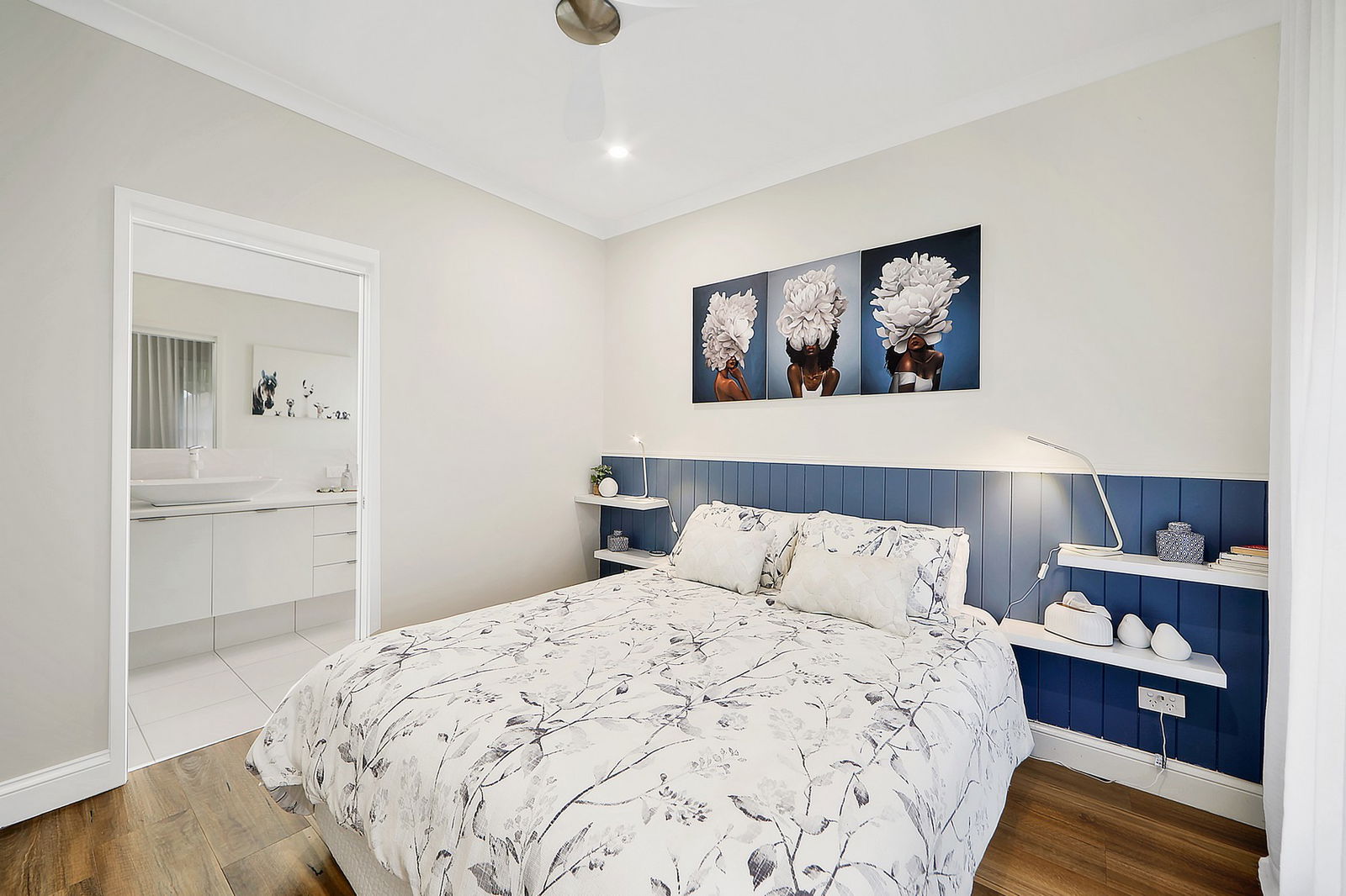 - This ensuite boasts floating dual vanity with walk behind shower and toilet for seamless privacy.
