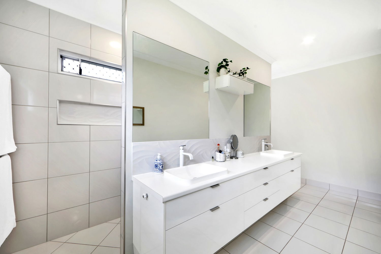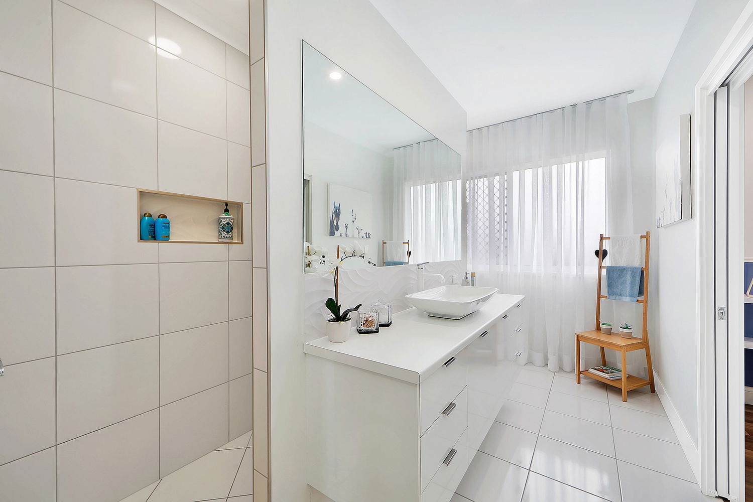 - This ensuite boasts floating dual vanity with walk behind shower and toilet for seamless privacy.
