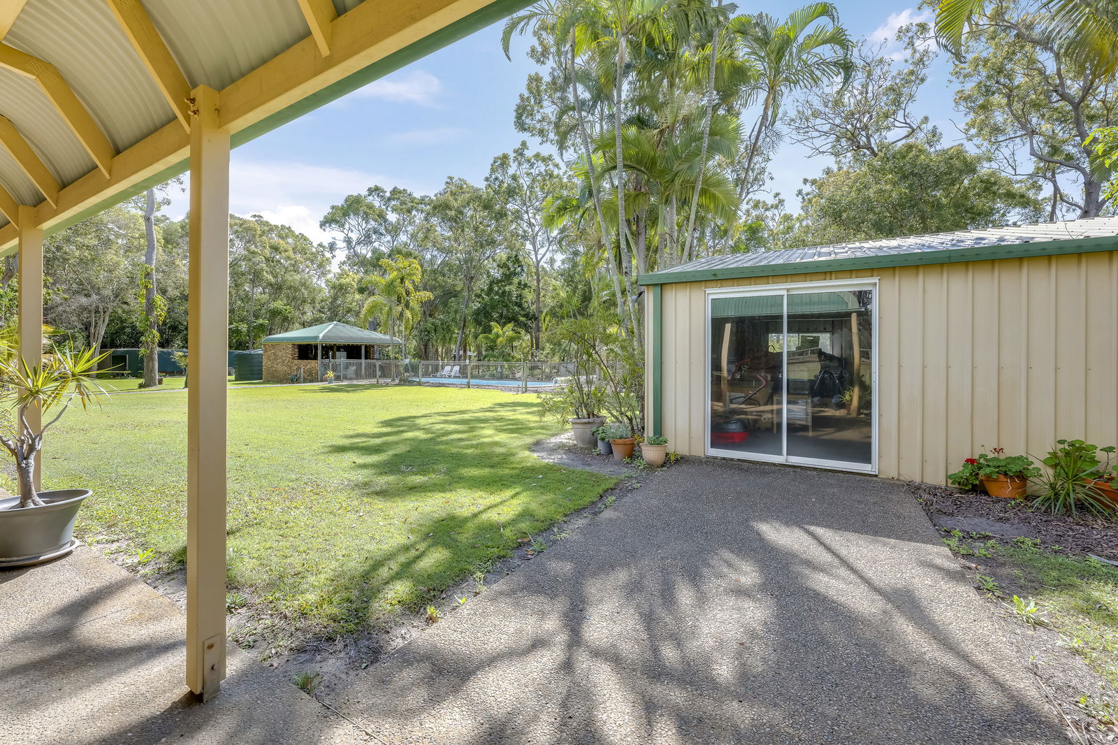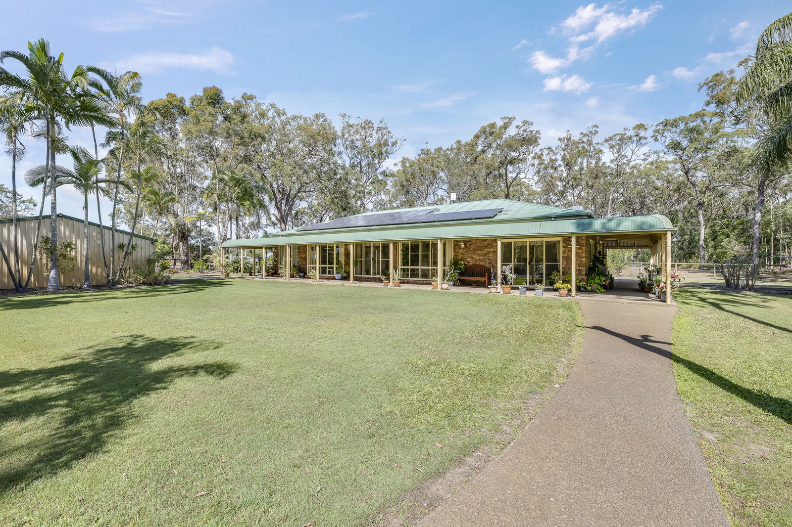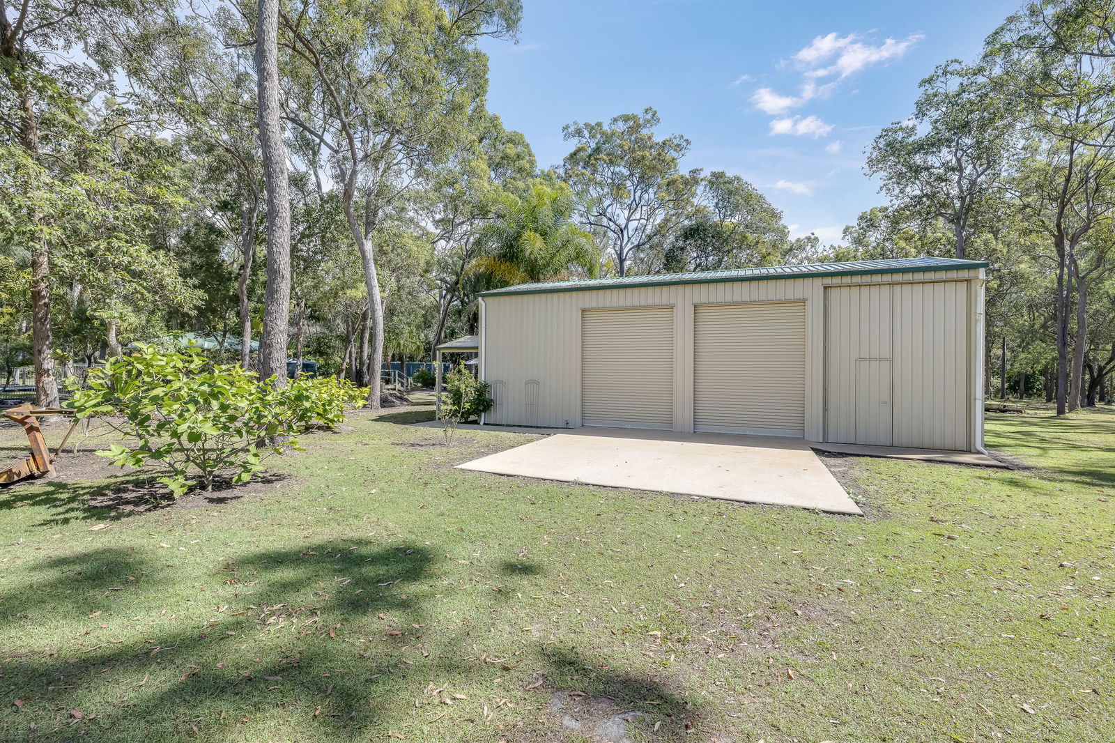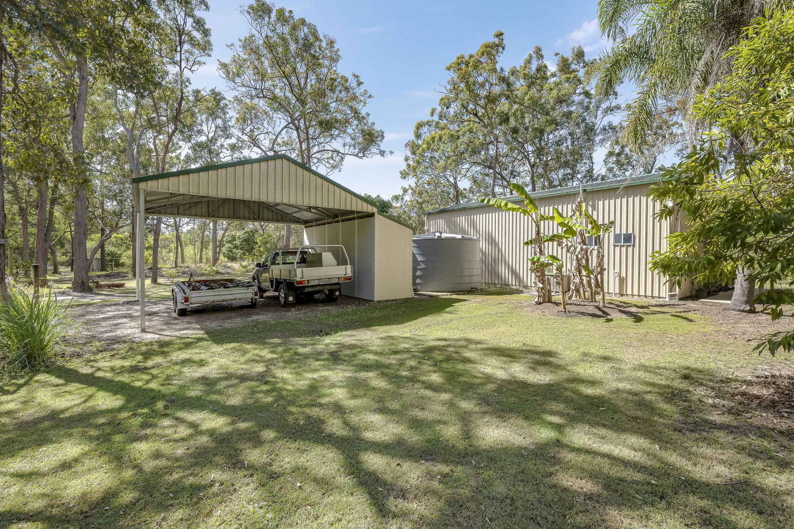 - High-clearance double carport with attached storeroom (powered and water-connected)