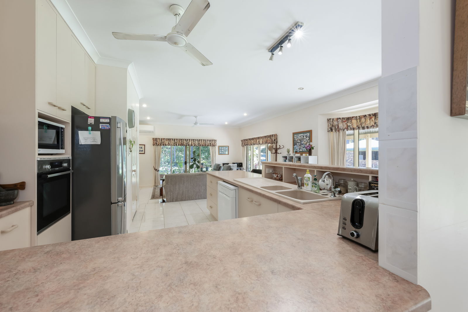 - Bedroom 2: Carpeted with built-in robes and ceiling fan